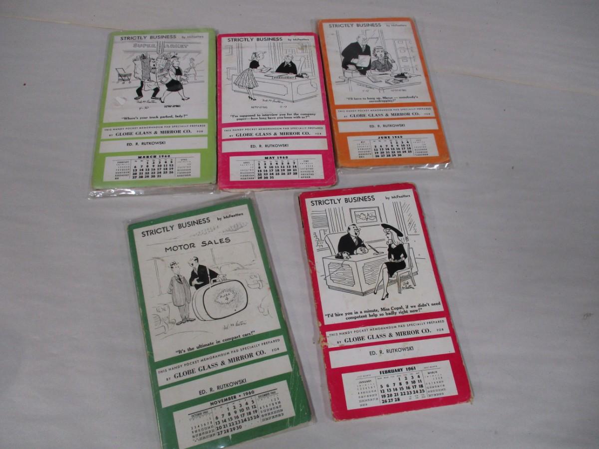 Set of Five 'Strictly Business' Cartoon 1960's Advertising Calendars
