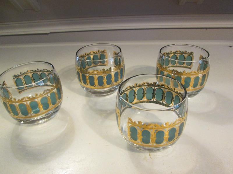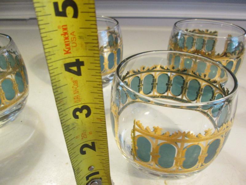 1960's Culver Glass - Green Scroll - Roly Poly or Whiskey Glass