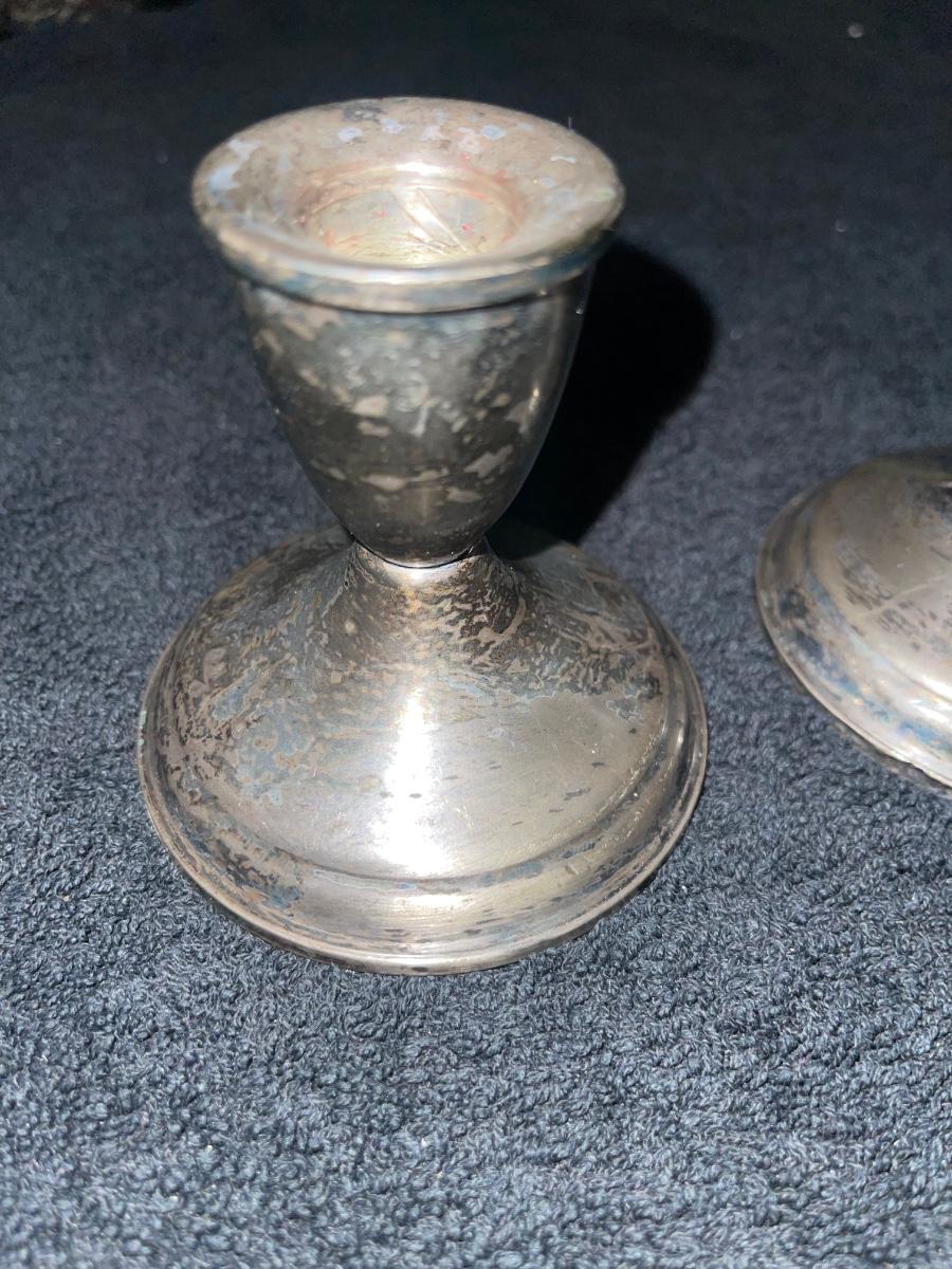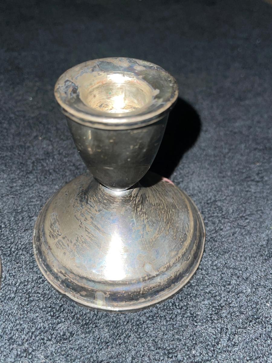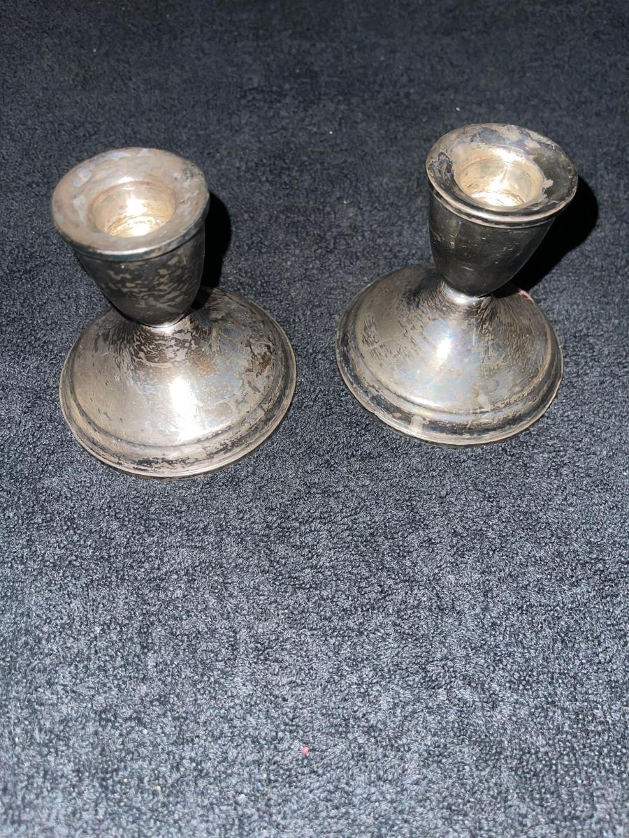 1960s Duchin Creation Sterling Weighted Candle Holders. Pair of weighted sterling candle holders by Duchin Creation, the pieces are labeled and are in good vintage condition.