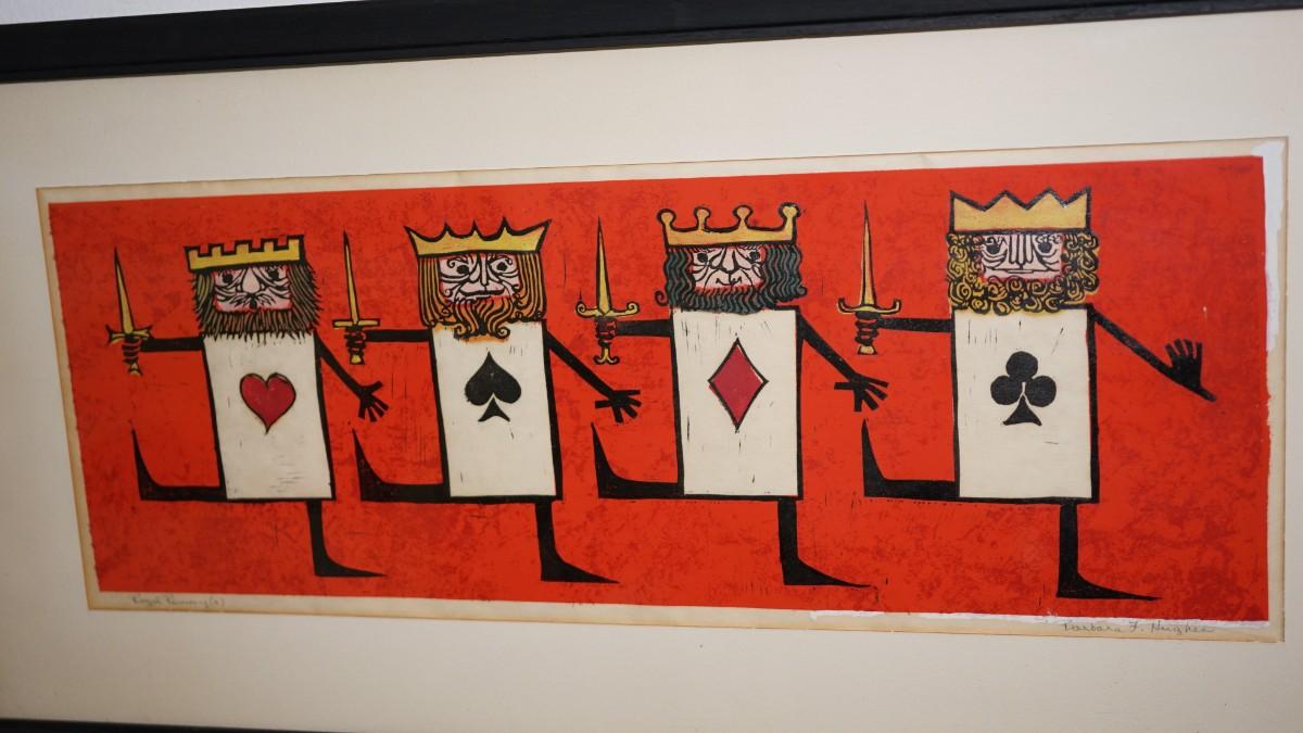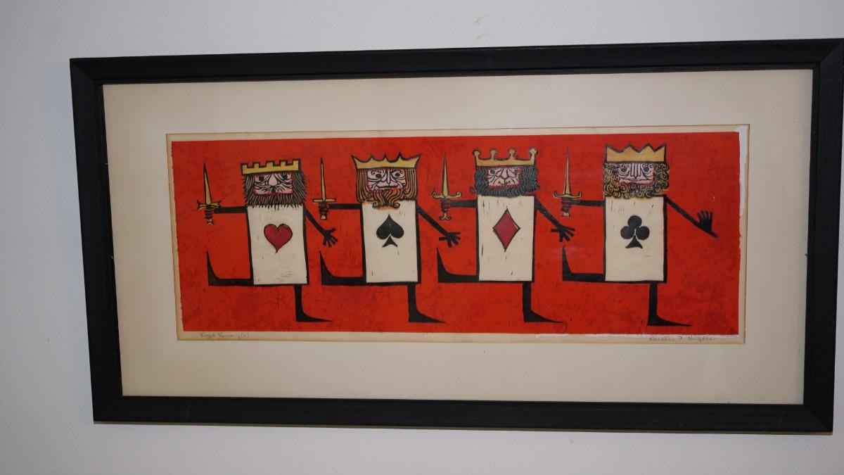 1960'S GOUCHE " FOUR RUMMYS" SIGNED BY BARBARA F. HUGHES /MATTED &FRAMED
