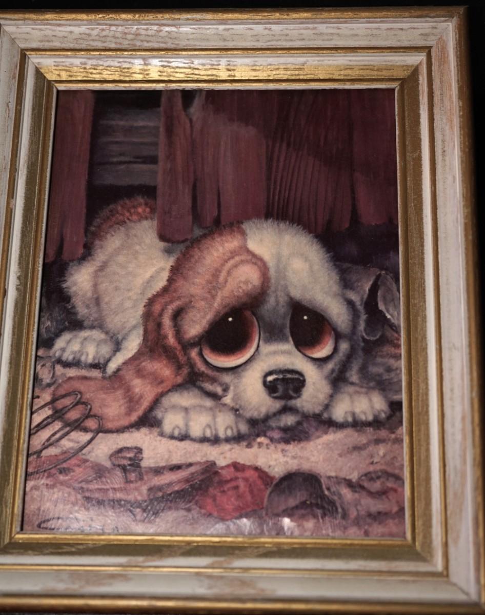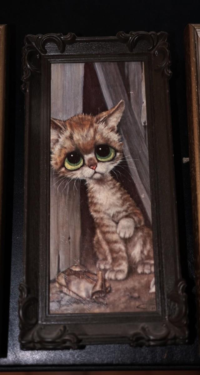 1960'S GROUPING OF FOUR BIG EYES PRINTS OF THREE PUPPIES AND KITTY FRAMED