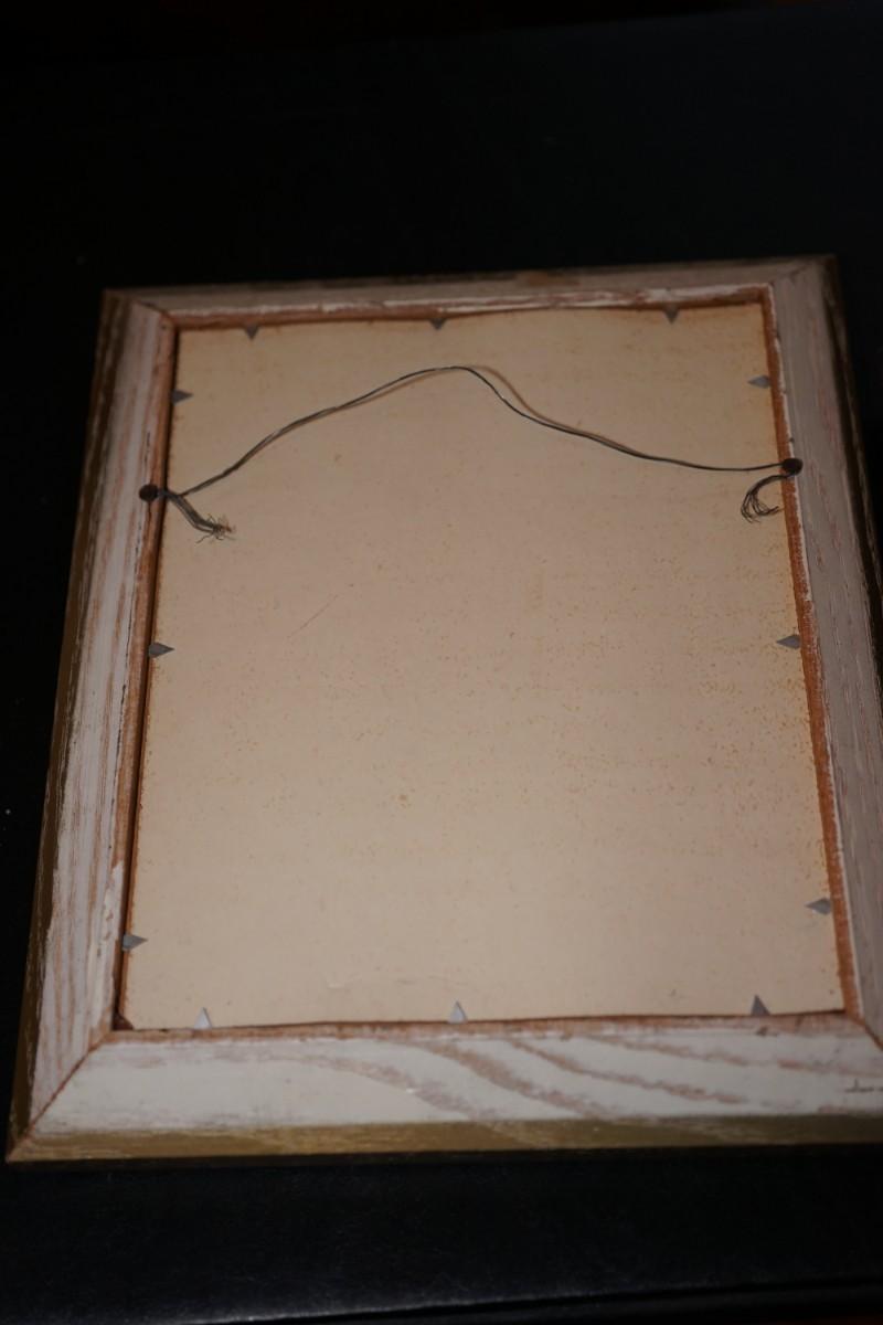 colorful. the two larger prints are framed in wooden 60's frames in a washed white paint.