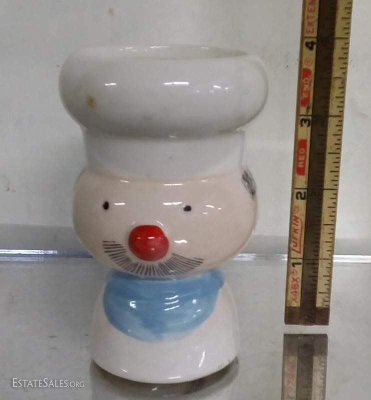1960s Holt Howard Collectible lot of 4 ceramic egg cups. This Chef with his Hat can hold your soft and hard boiled eggs. 3.5 x 2.5 inches