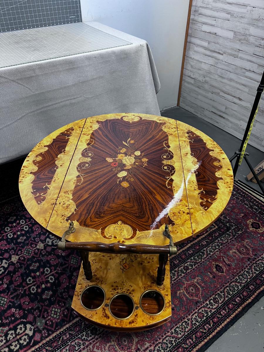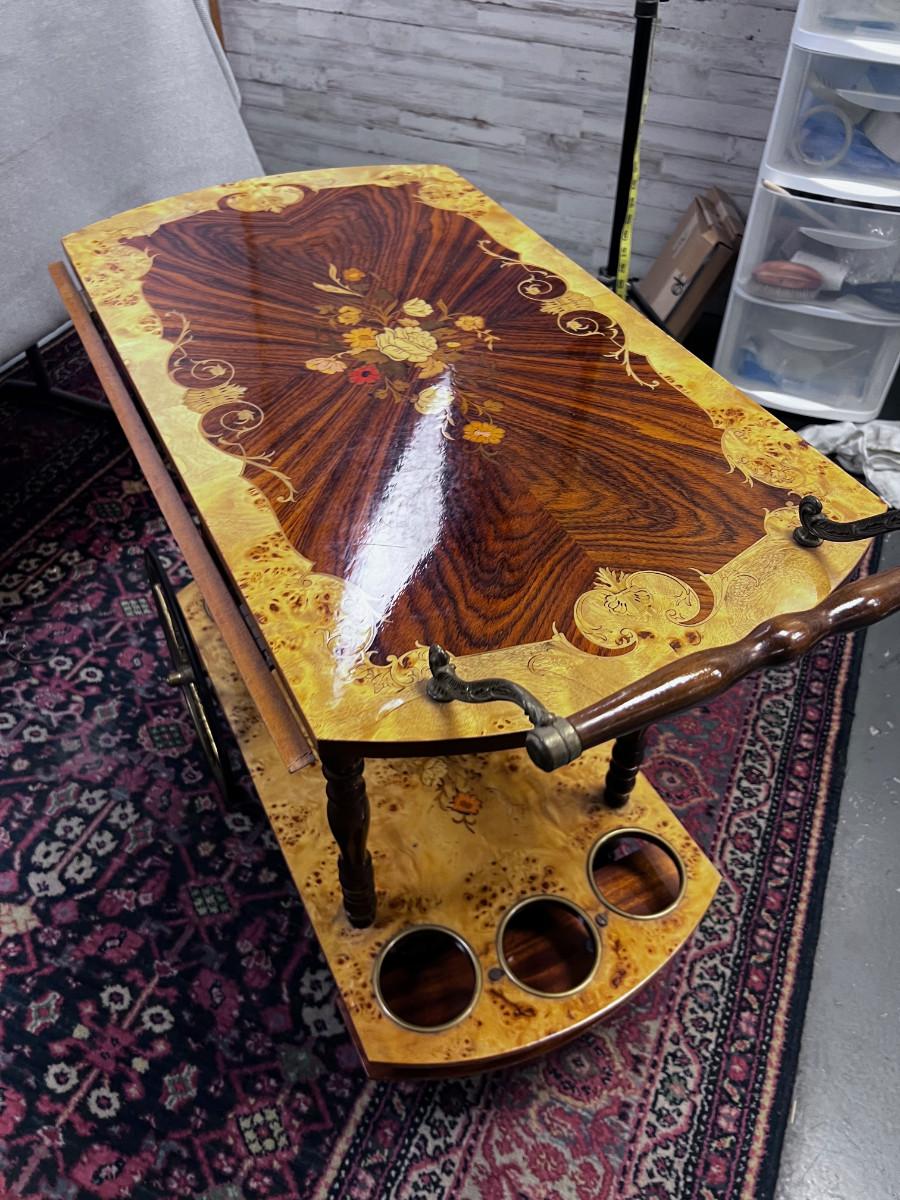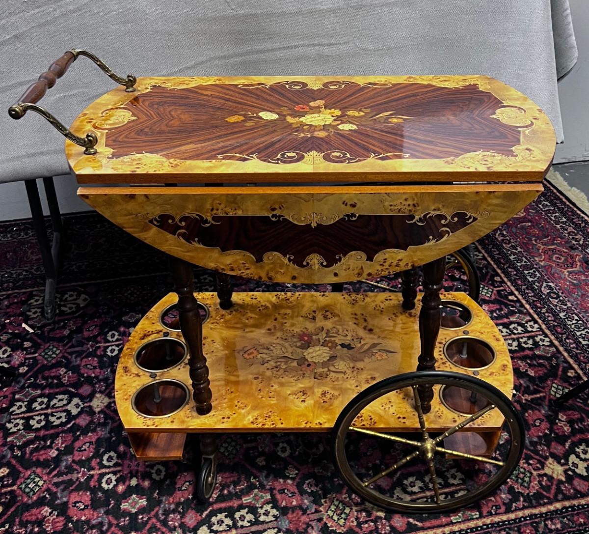 1960's Italian Walnut Burl Bar Cart Inlay AWESOME
