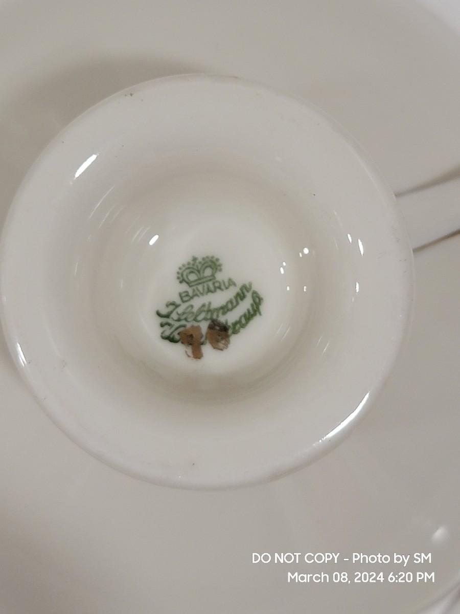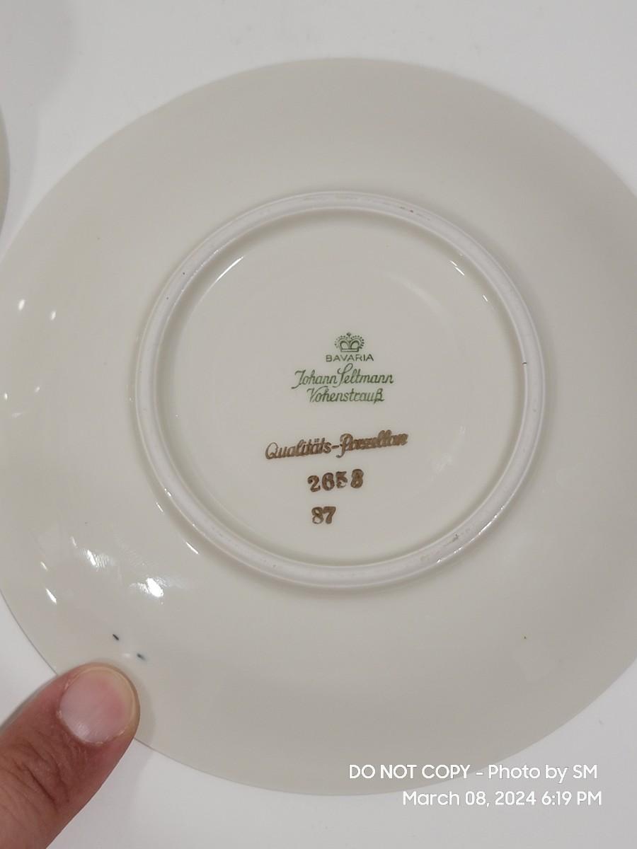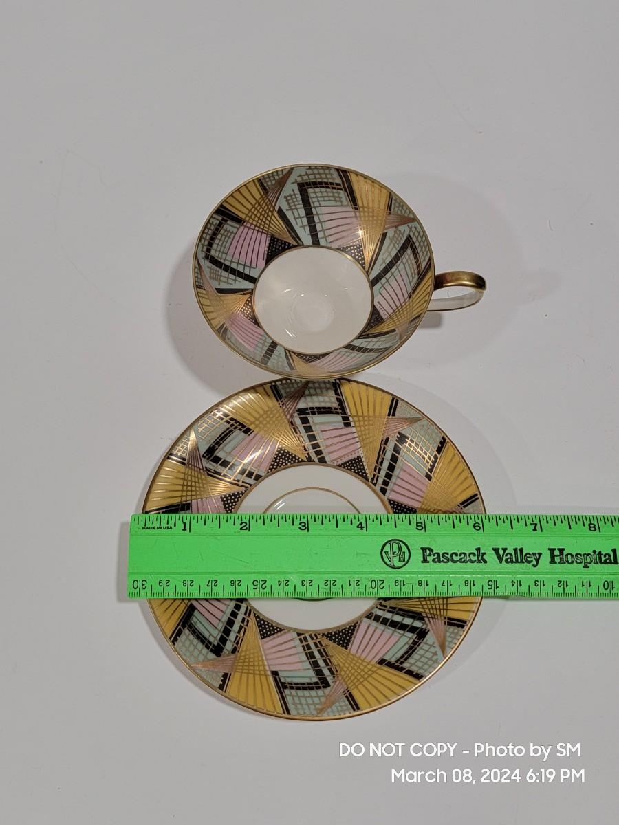 1960s MCM Johann seltmann Vohenstraub Bavaria tea cup / saucer. Fabulous Mid Century/ retro colors. No chips no cracks. Place has a mark underneath like ink - see photo with my finger.