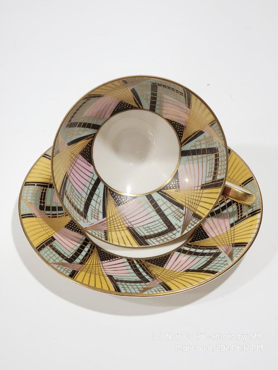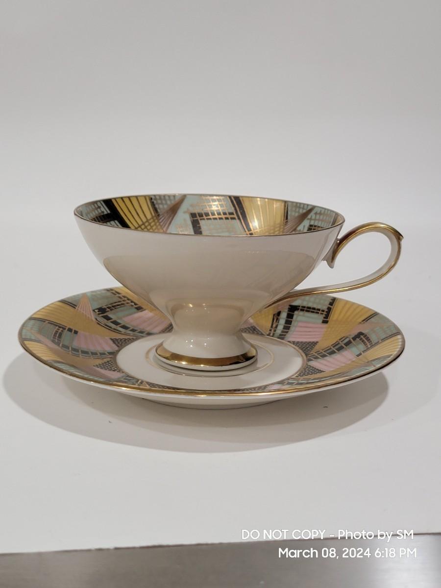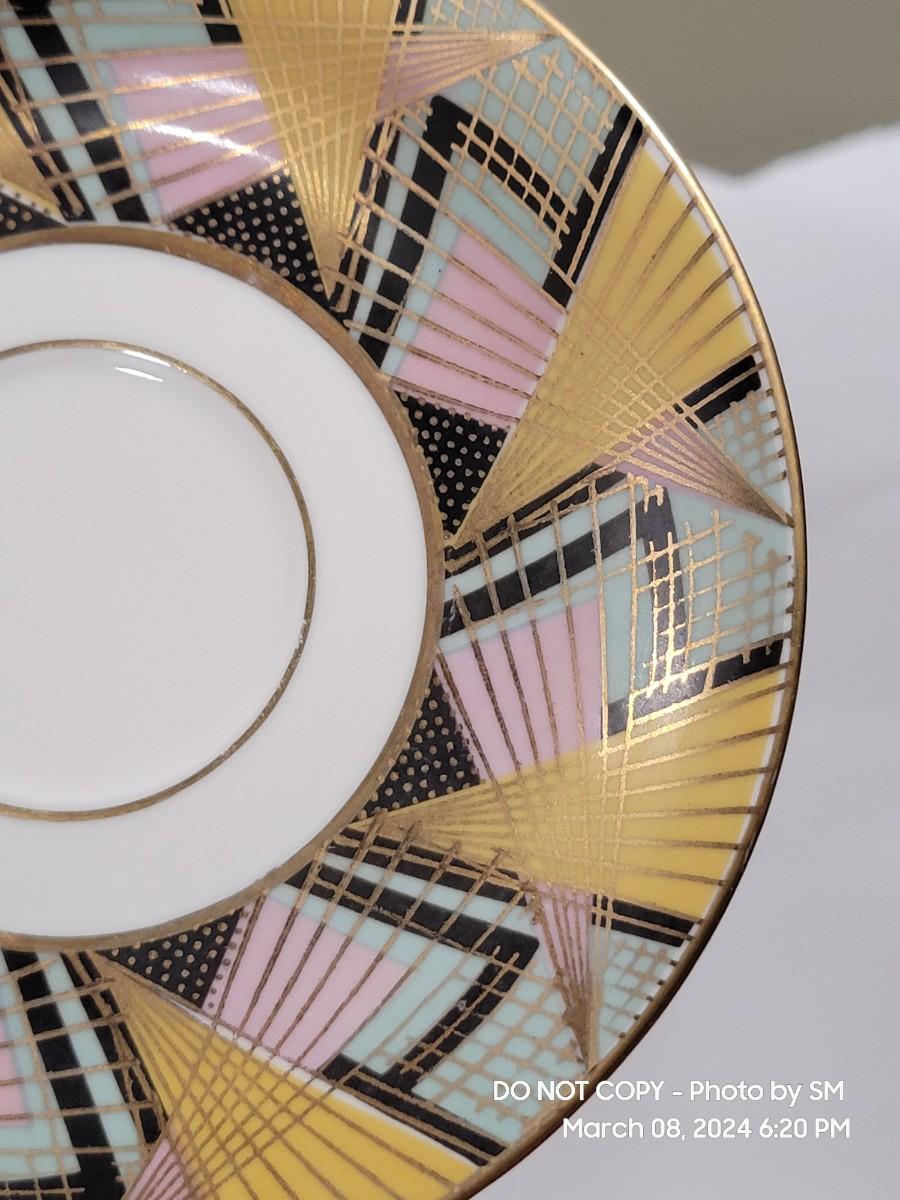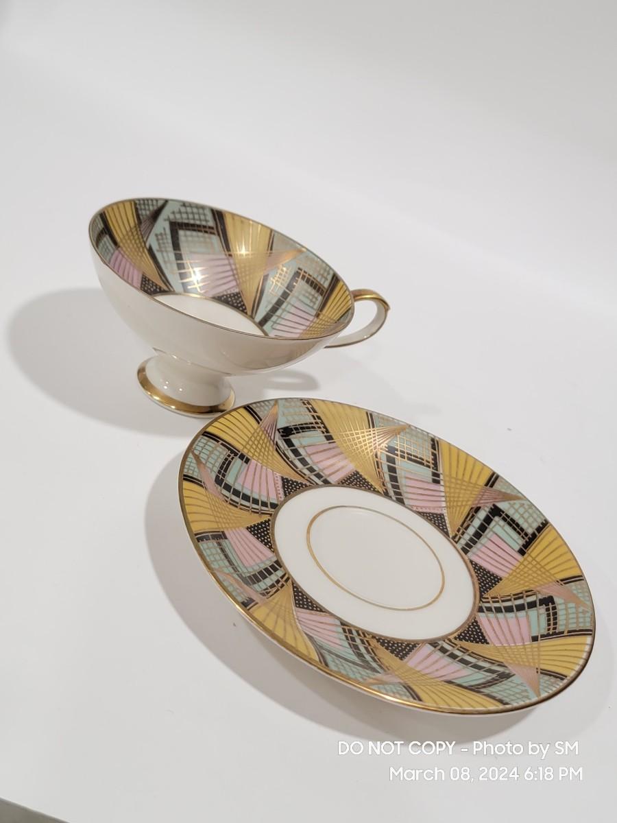 1960s MCM Johann seltmann Vohenstraub Bavaria tea cup / saucer. Fabulous Mid Century/ retro colors. No chips no cracks. Place has a mark underneath like ink - see photo with my finger.