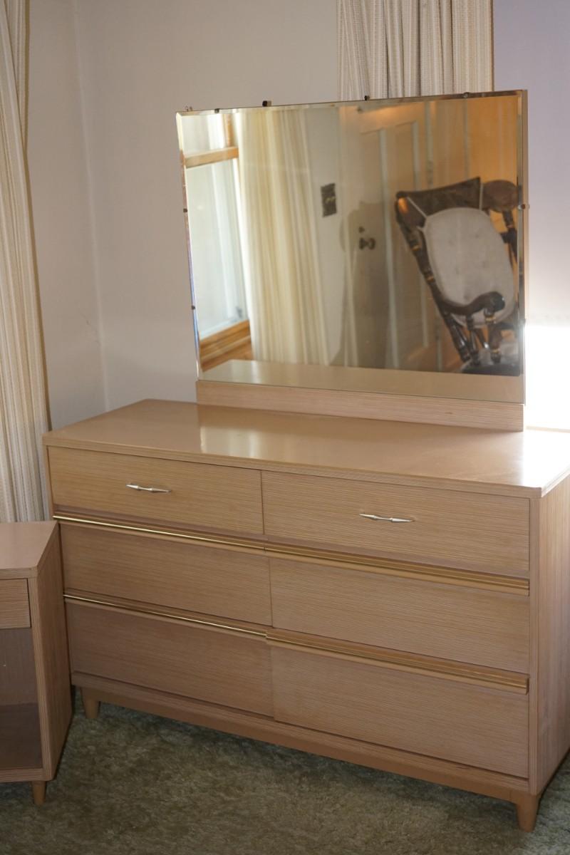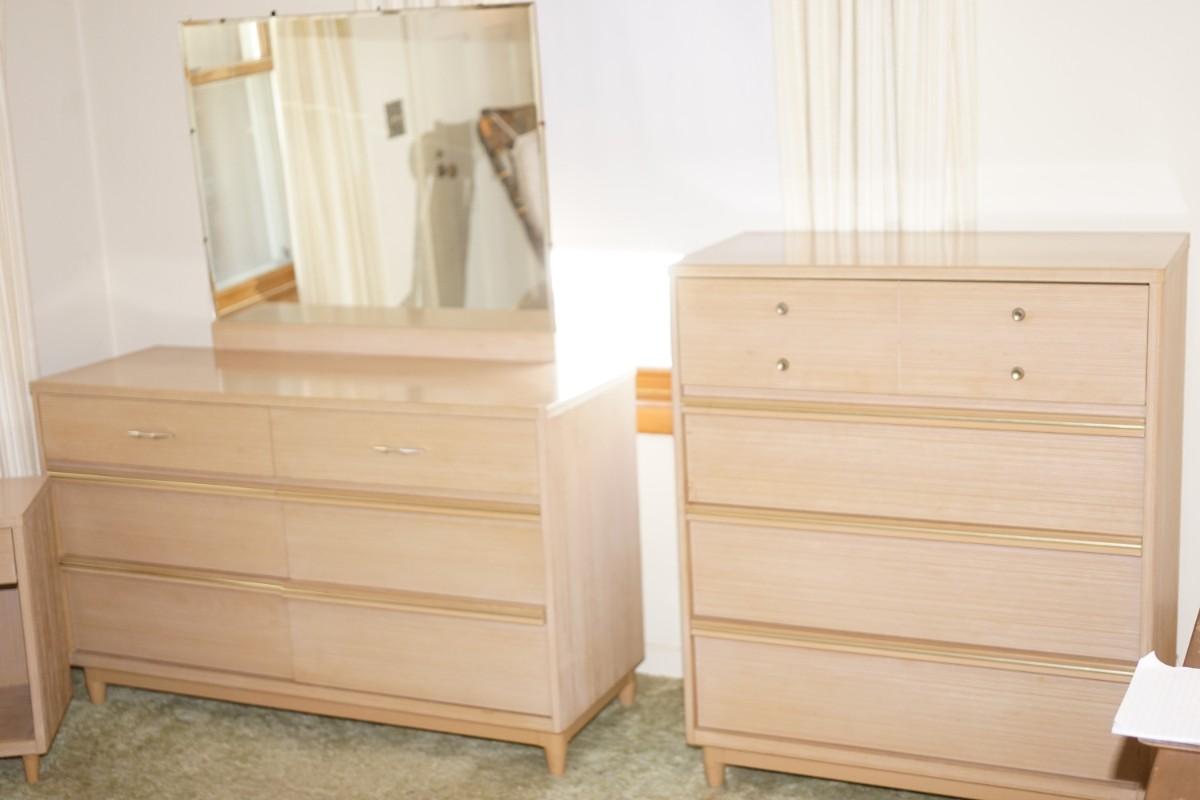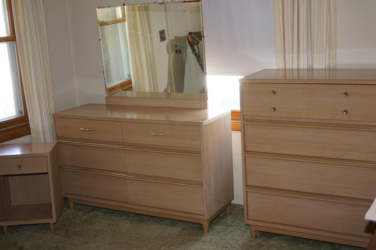 1960's MCM KROEHLER BLOND OAK THREE PIECE BEDROOM SET