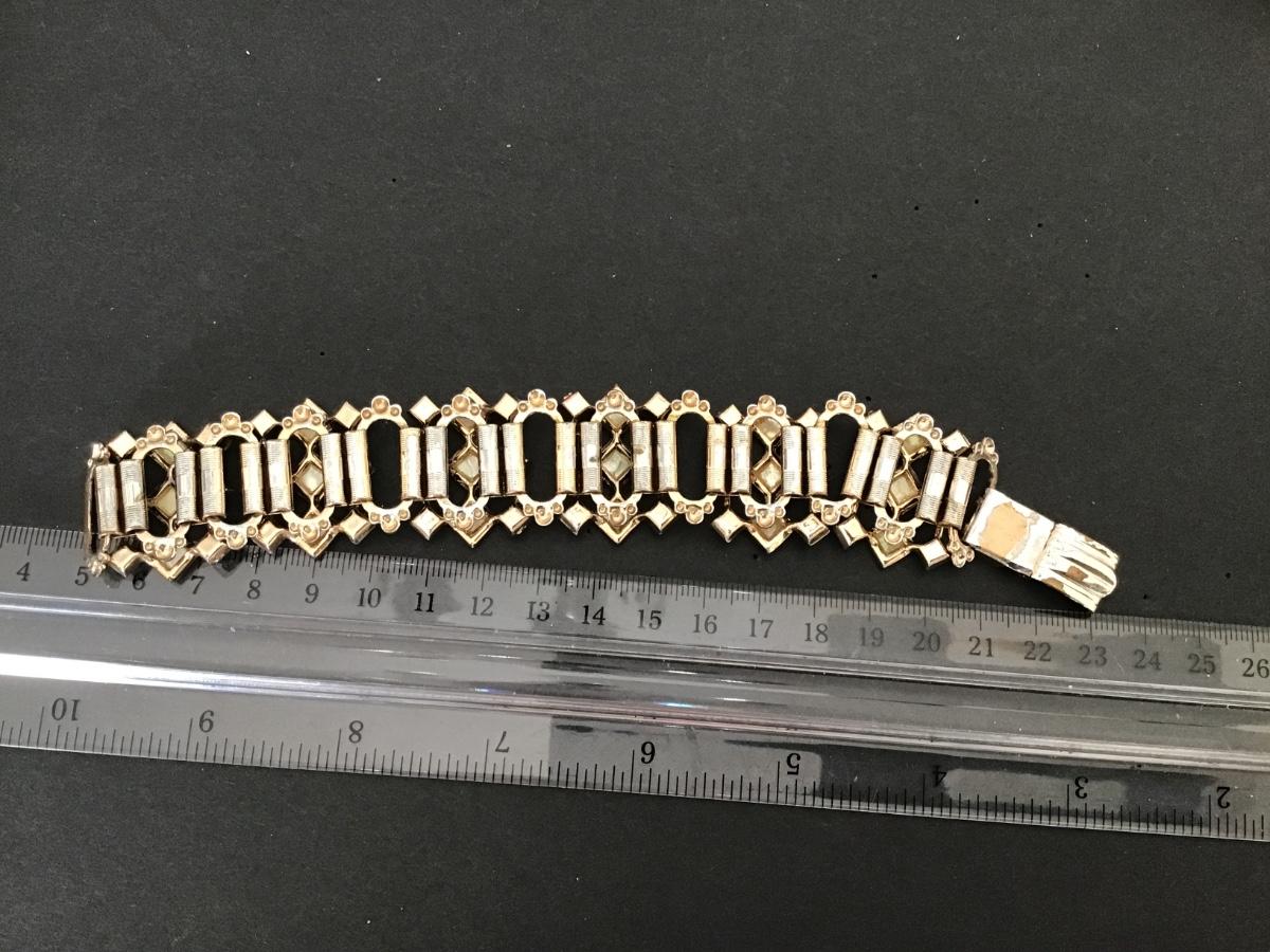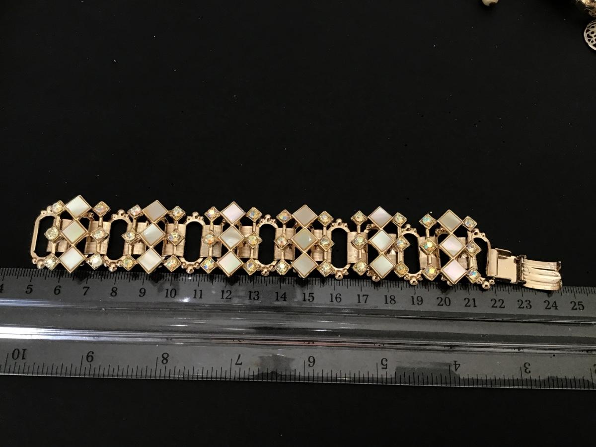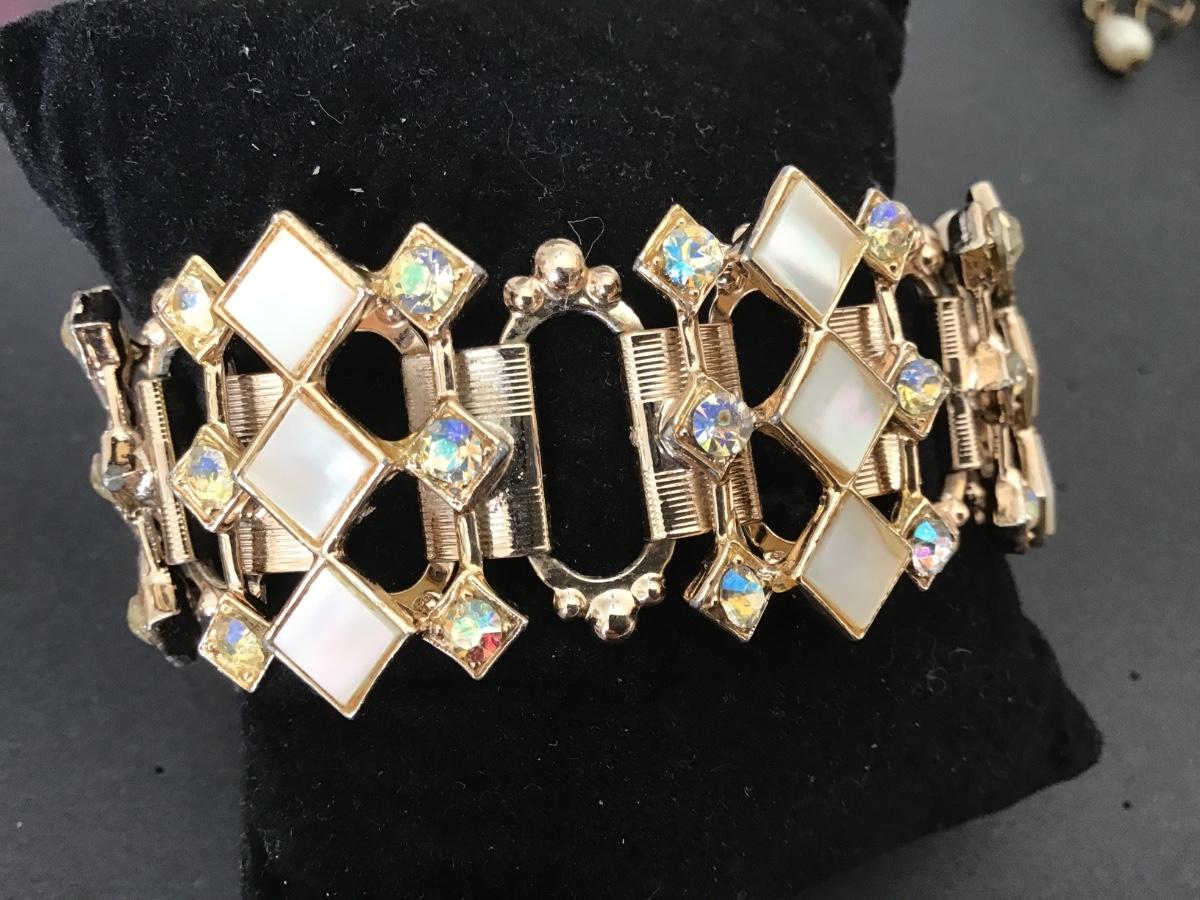 1960’s Mother of Pearl Rhinestone Gold Tone Bracelet