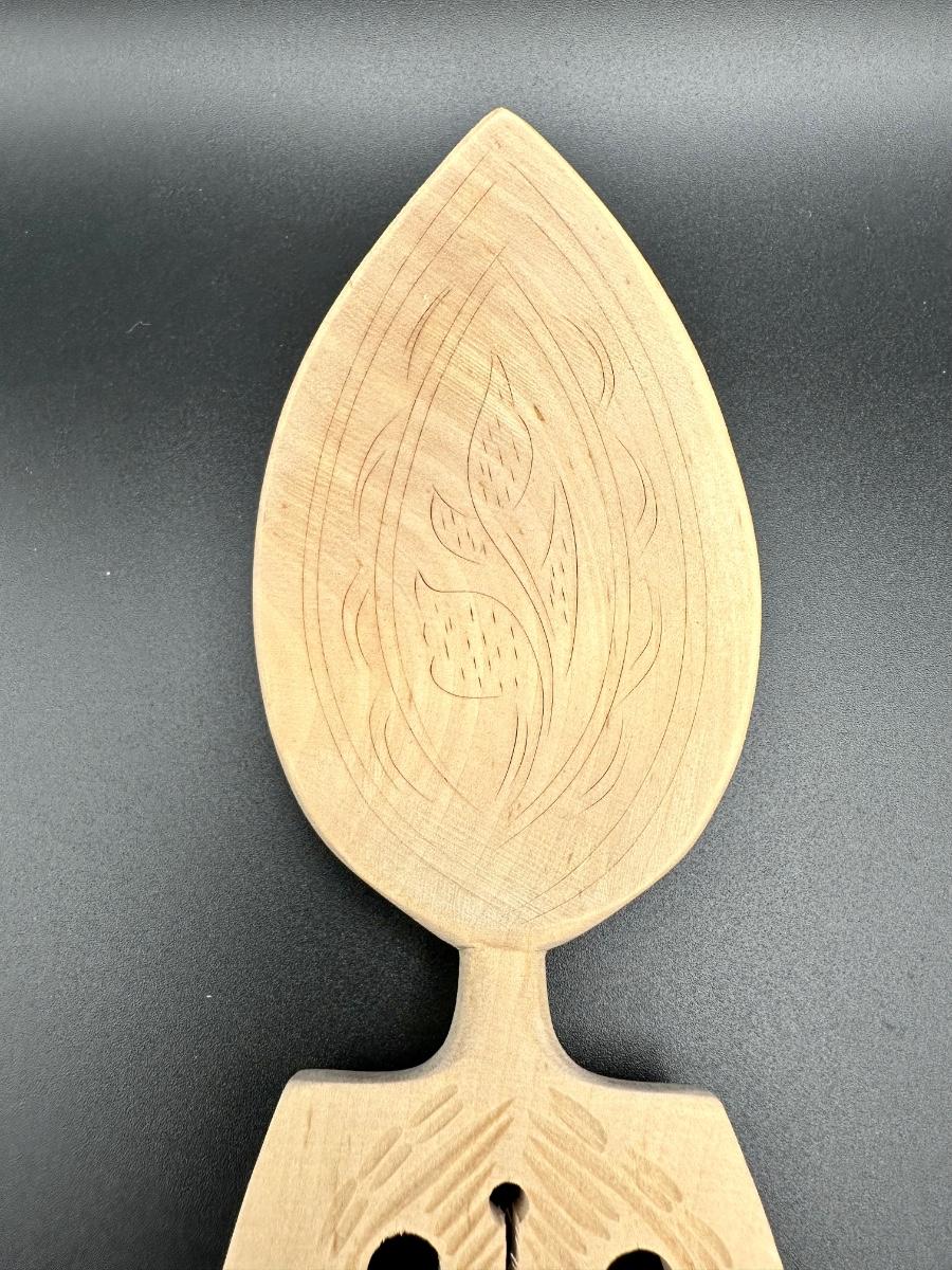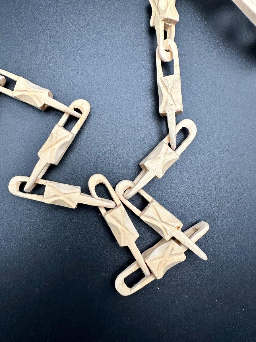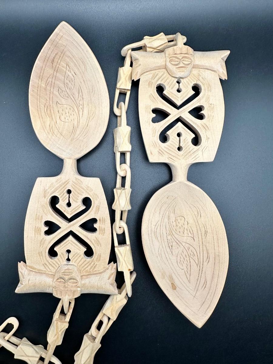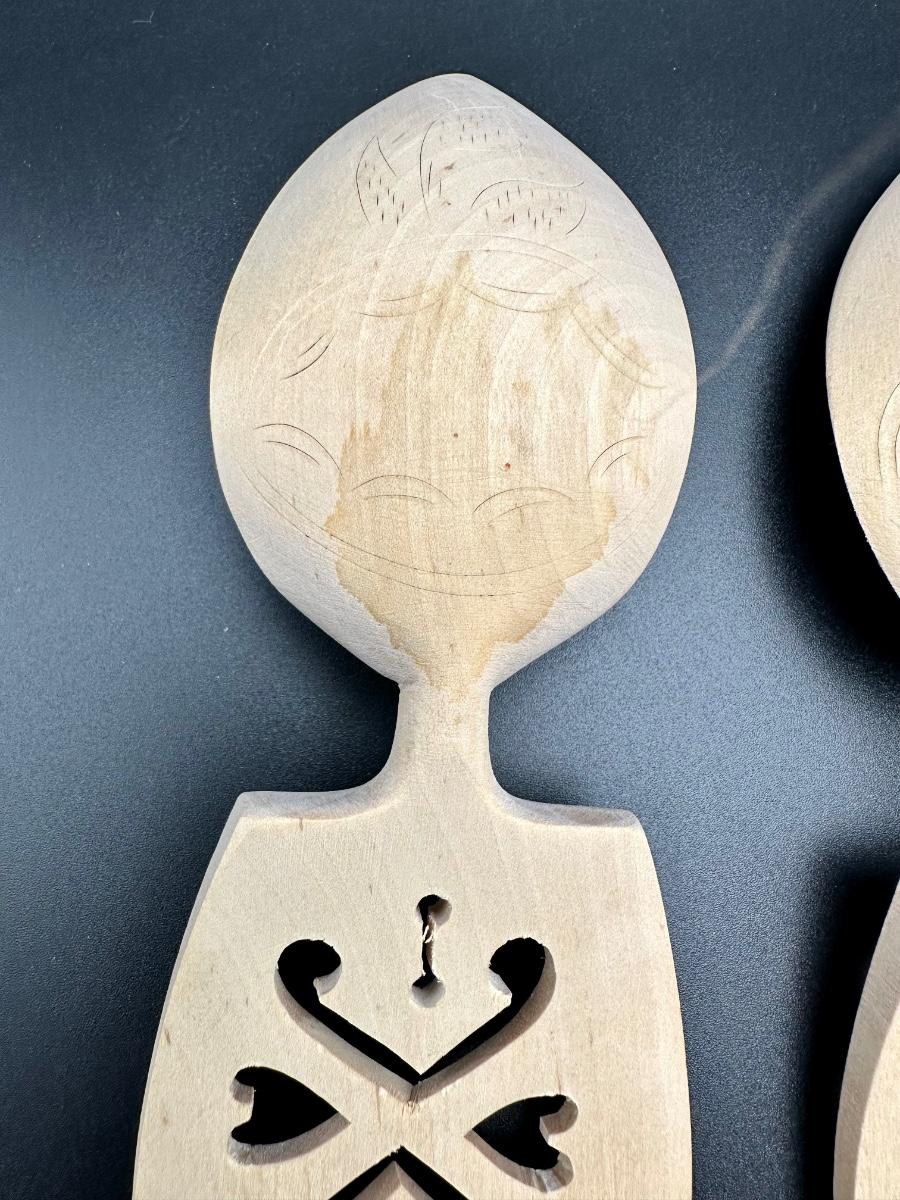 Painstakingly hand carved from a single piece of birch wood (no joints or breaks in any links) symbolizing the unbreakable bond of marriage. Ceremonial Scandinavian wedding spoons were made by the groom as a gift to his bride as far back as the 1600’s. It is rumored after they shared their wedding meals, they hung it in their home for good luck. Been in original box since the wedding in the late 1960's.