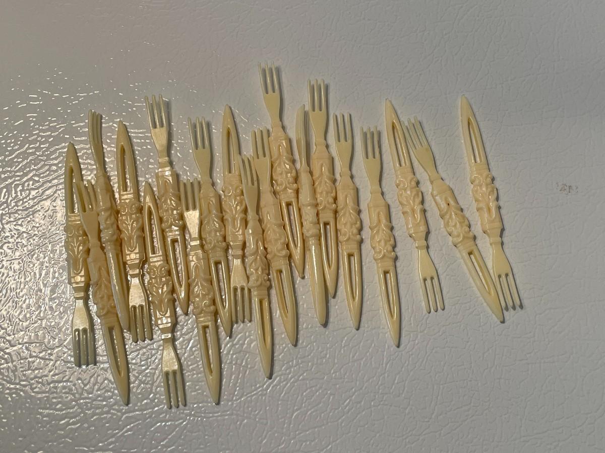1960s Plastic Ivory Cocktail Forks