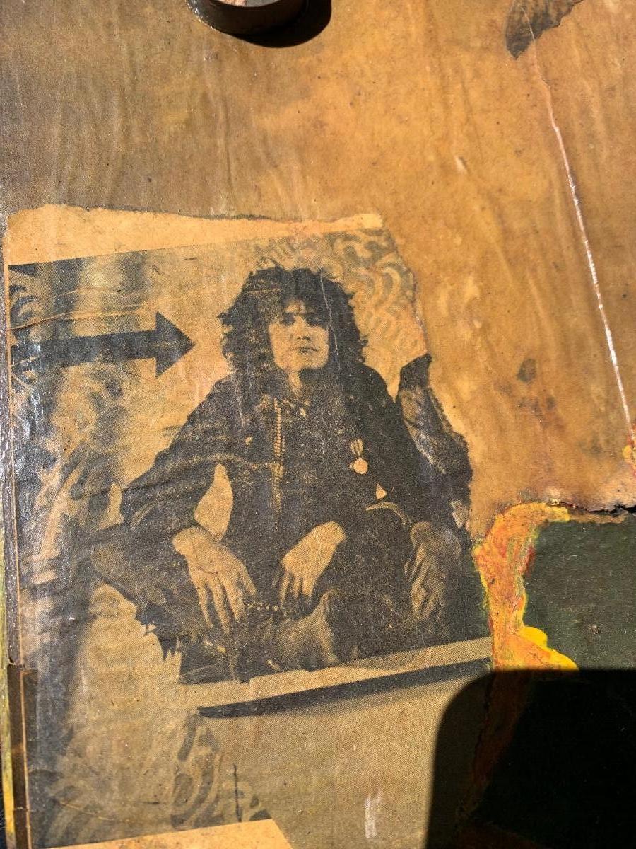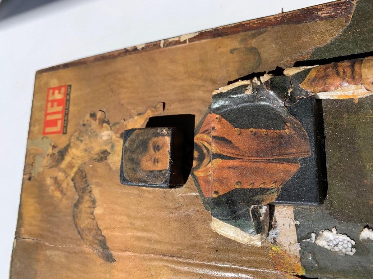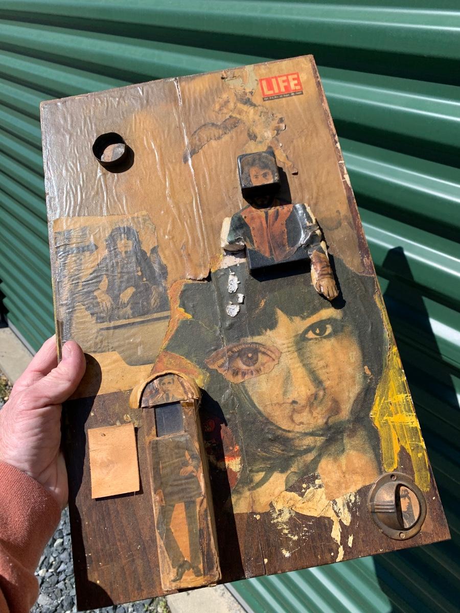 One of several groovy old , hippie error art creations we found in the estate - see all photos for content, condition , and dimensions. Selling as is as found in the estate.