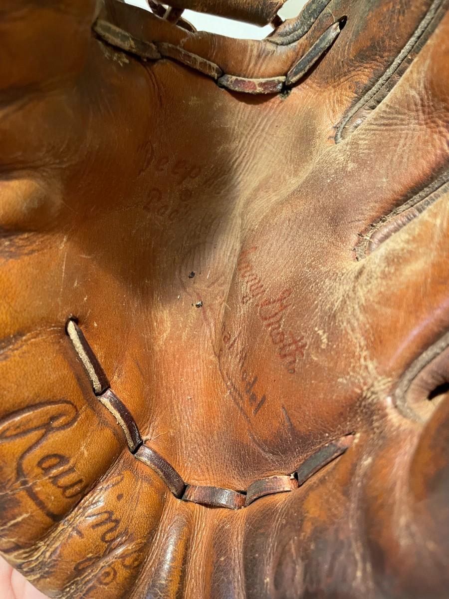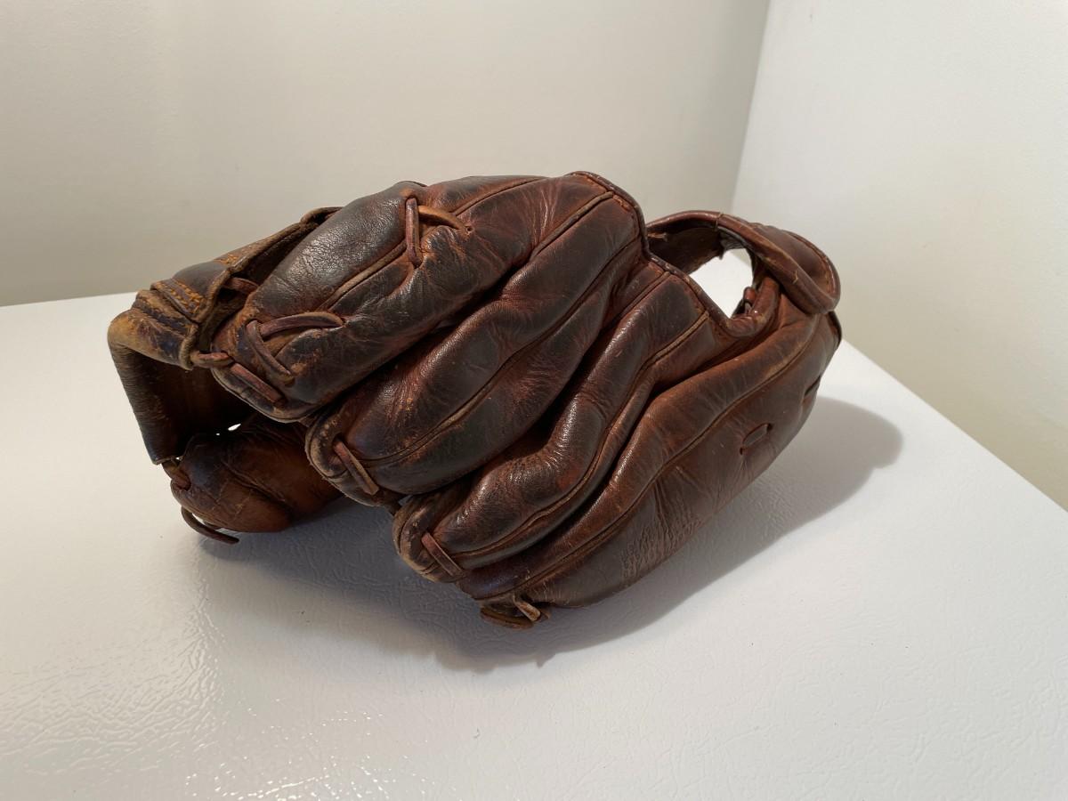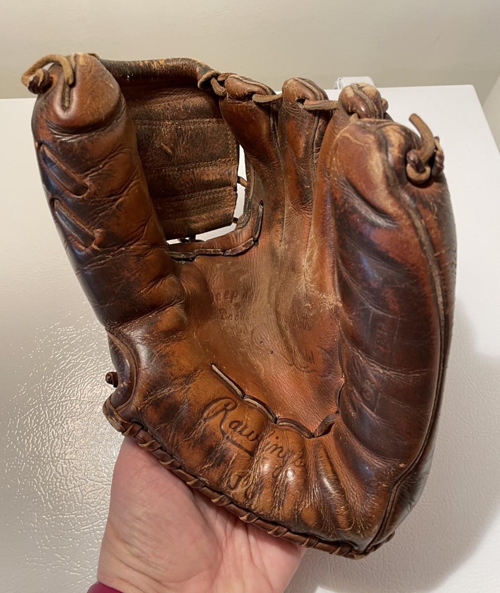 This is the Johnny Groth Personal Model baseball glove by Rawlings patent 2629091. This glove has been with the consignor since the 1960s and has an anchor web and deep well pocket.