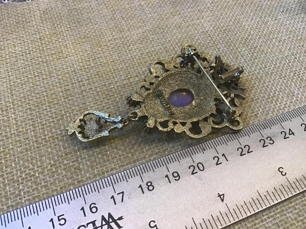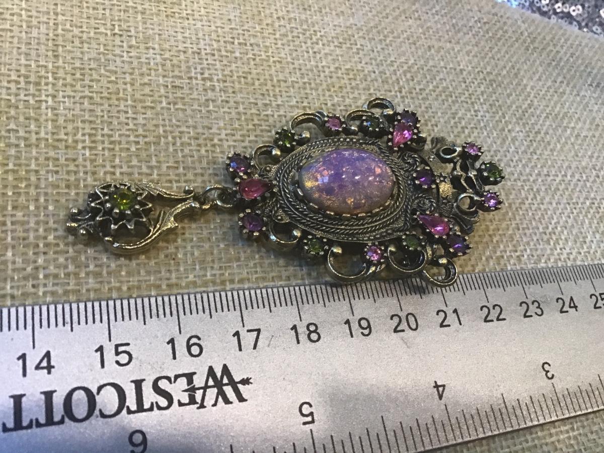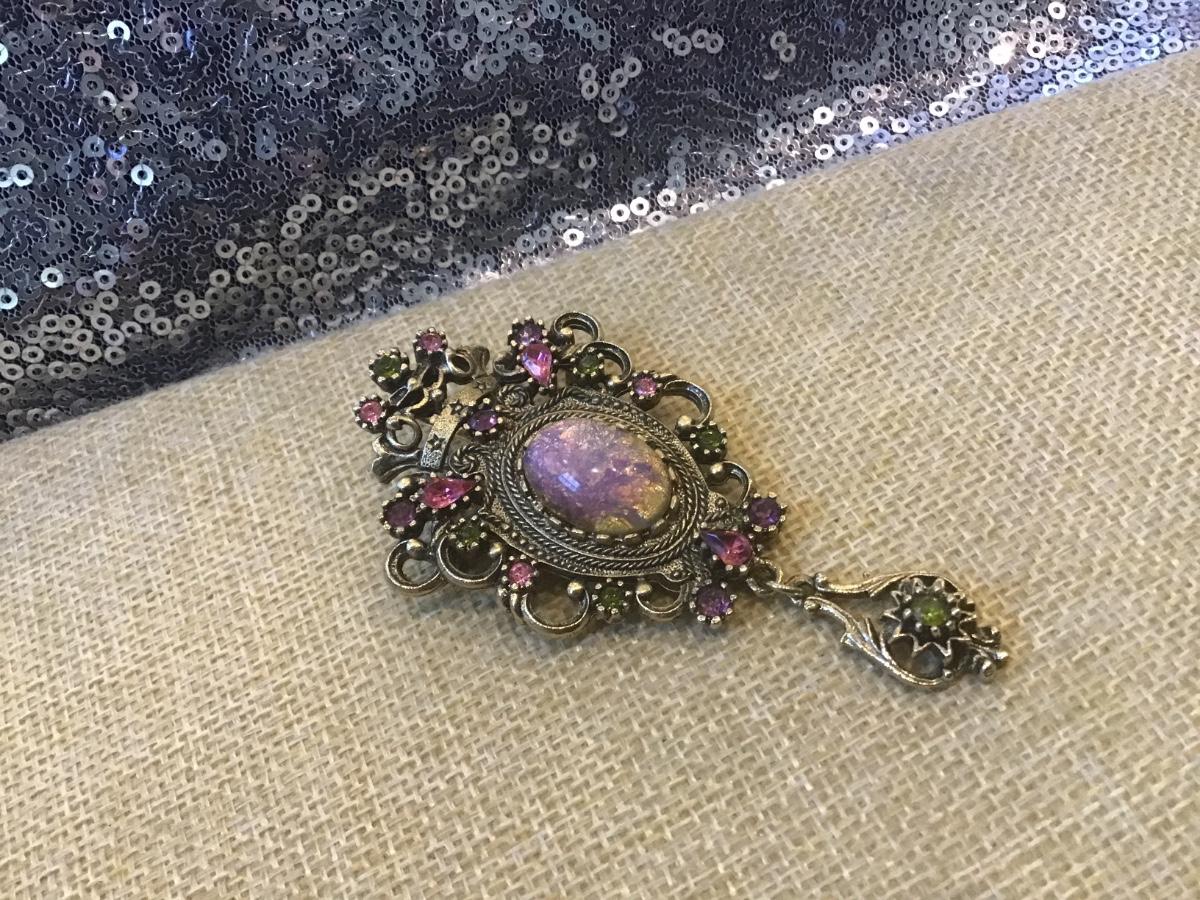 1960s Sarah Coventry Antiqued Contessa Pink Confetti Faux Opal Pendant/ Brooch