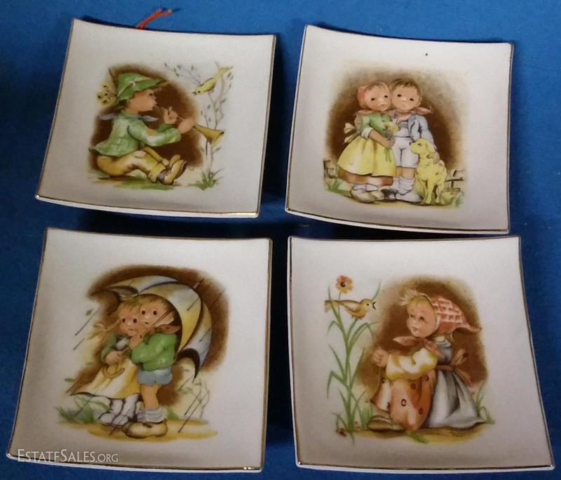 1960s Set of 4 Little Square Hummel like ceramic wall plates