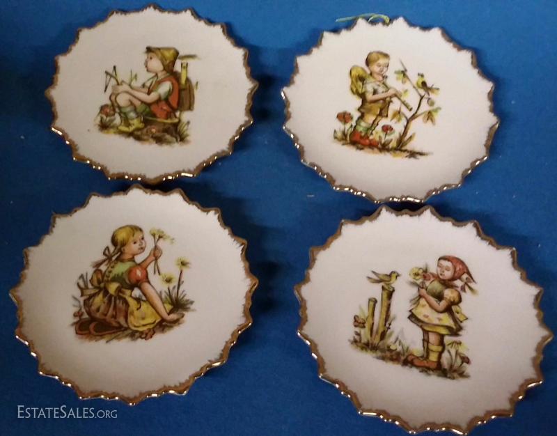 1960s Set of 4 Little Round Hummel like ceramic wall plates-Made in Japan