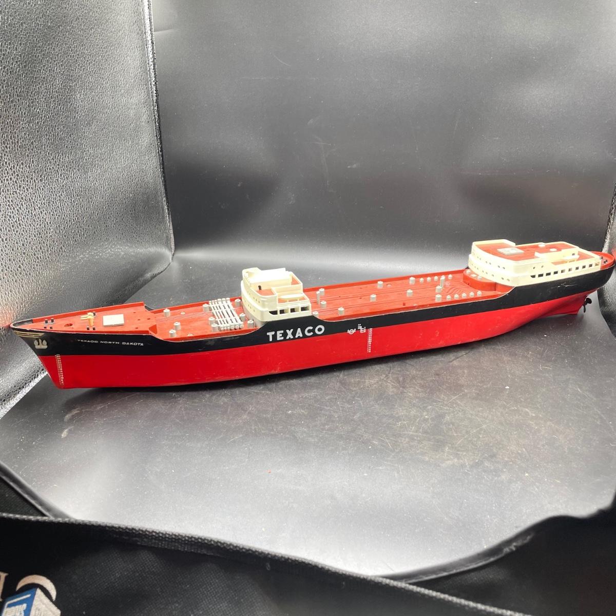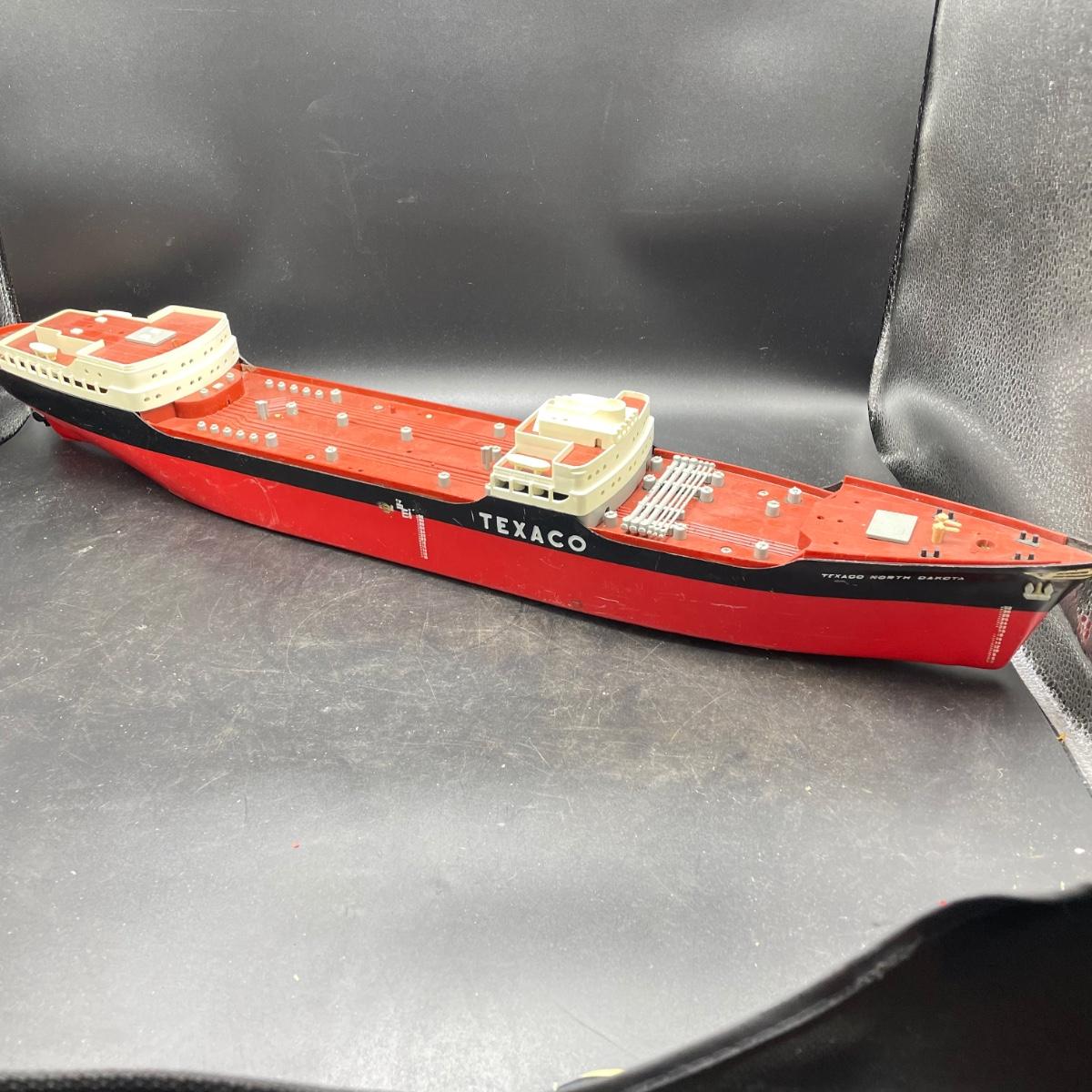 Vintage advertising Texaco North Dakota 27” ship. Ship is USA made, with mostly plastic. One of the four wheels is missing, but ship is mostly in great shape. See images. Shipping available.