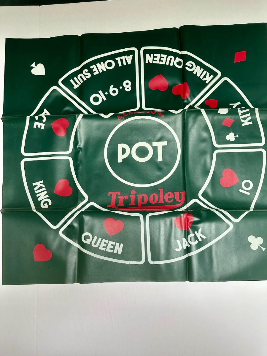 Previous Tripoley games had folding boards. The 60's version introduces the rubber mat. Condition in pictures.