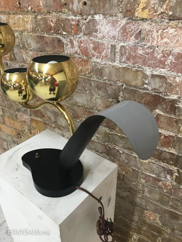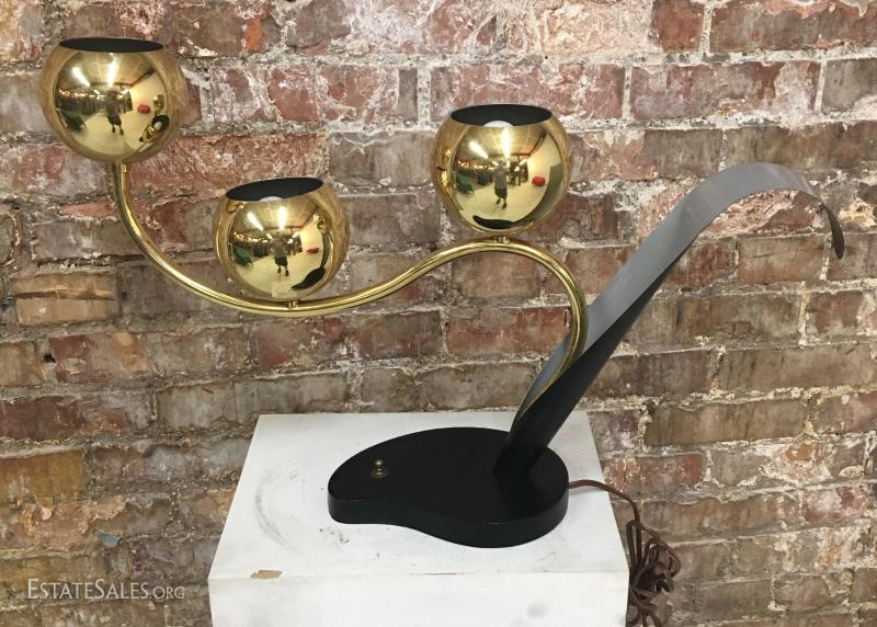 Vintage 1960's lamp 3 brass bulbs on a curving base. About 24" long and 12" tall. Working condition.