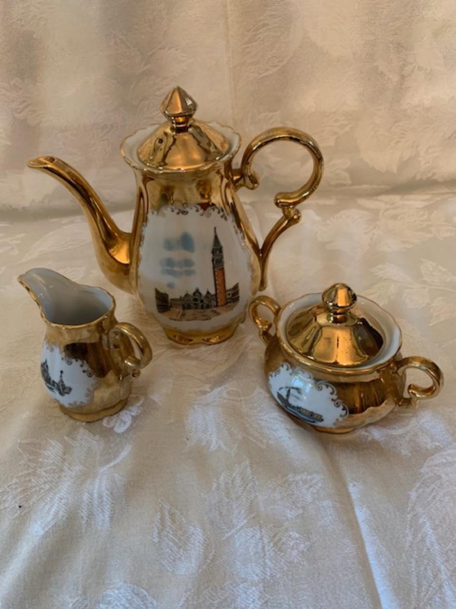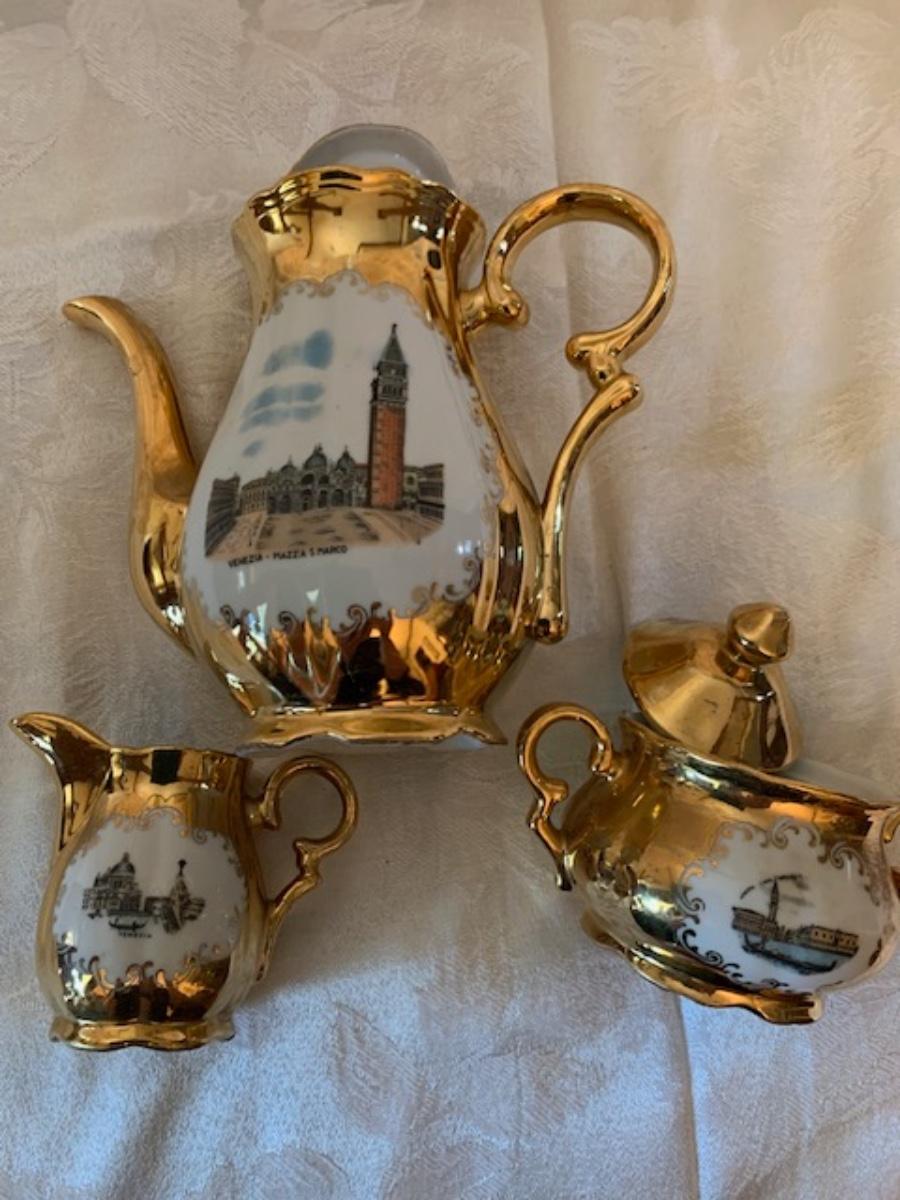 1960s Venetia, Italy Murano gold leaf porcelain coffee set, 3-piece