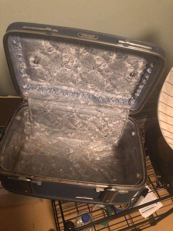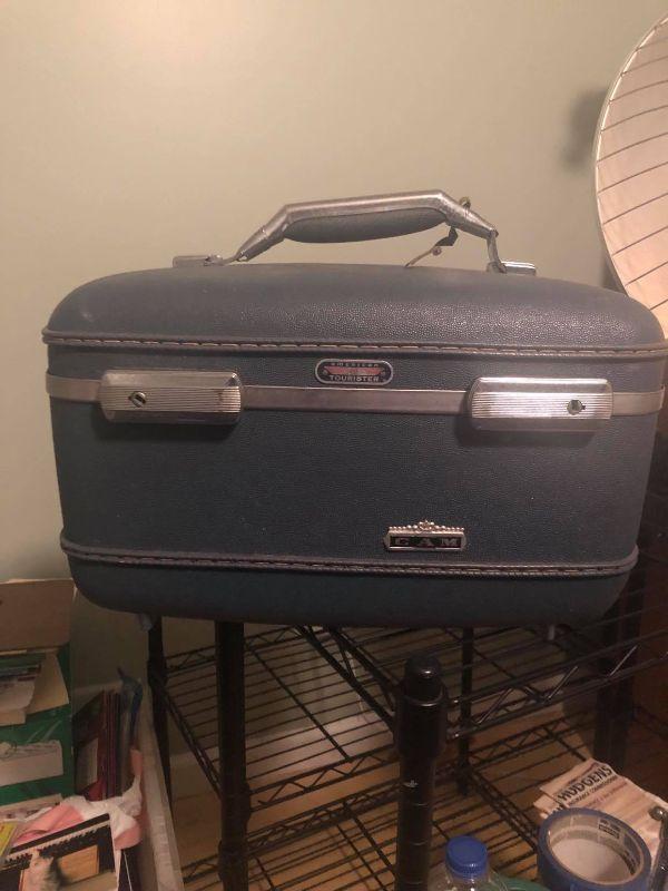 Vintage 1960s Classic American Tourister TIARA Hard Train Cosmetic Case, no key, no shelf. Fabric lining.