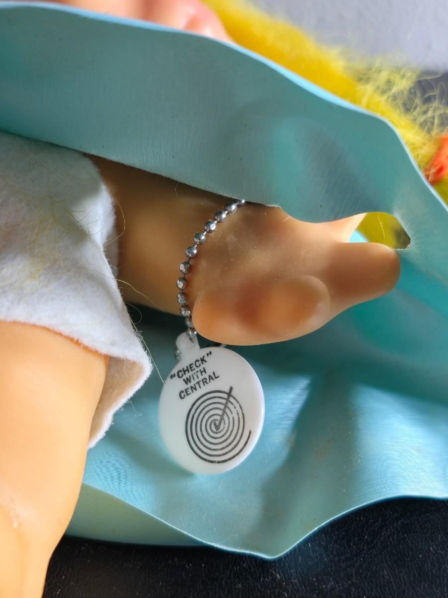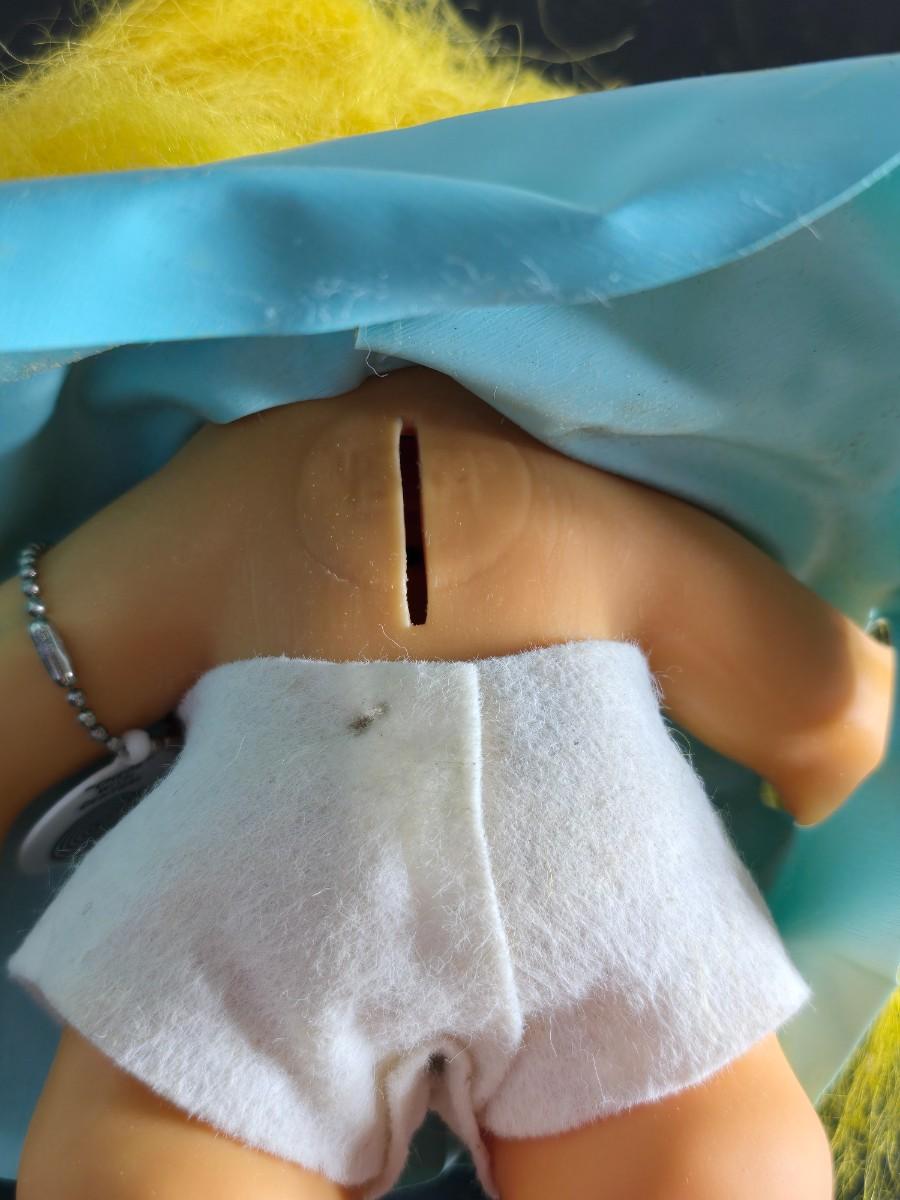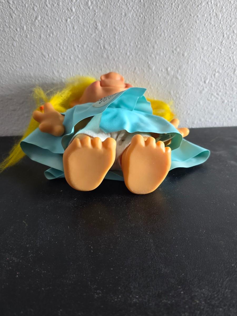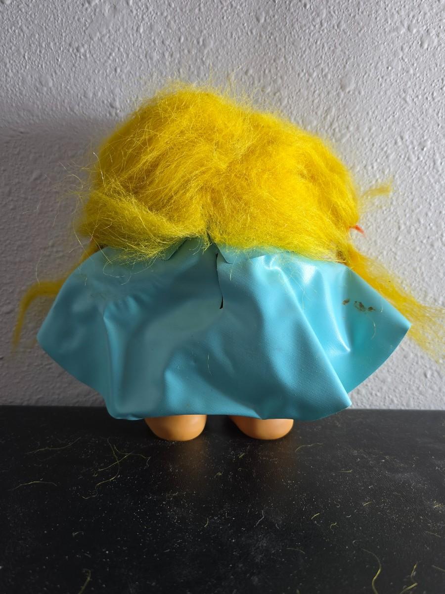 1960'S Vintage girl Troll bank with blue vinyl raincoat - Rare Thomas Dam 7" Troll doll