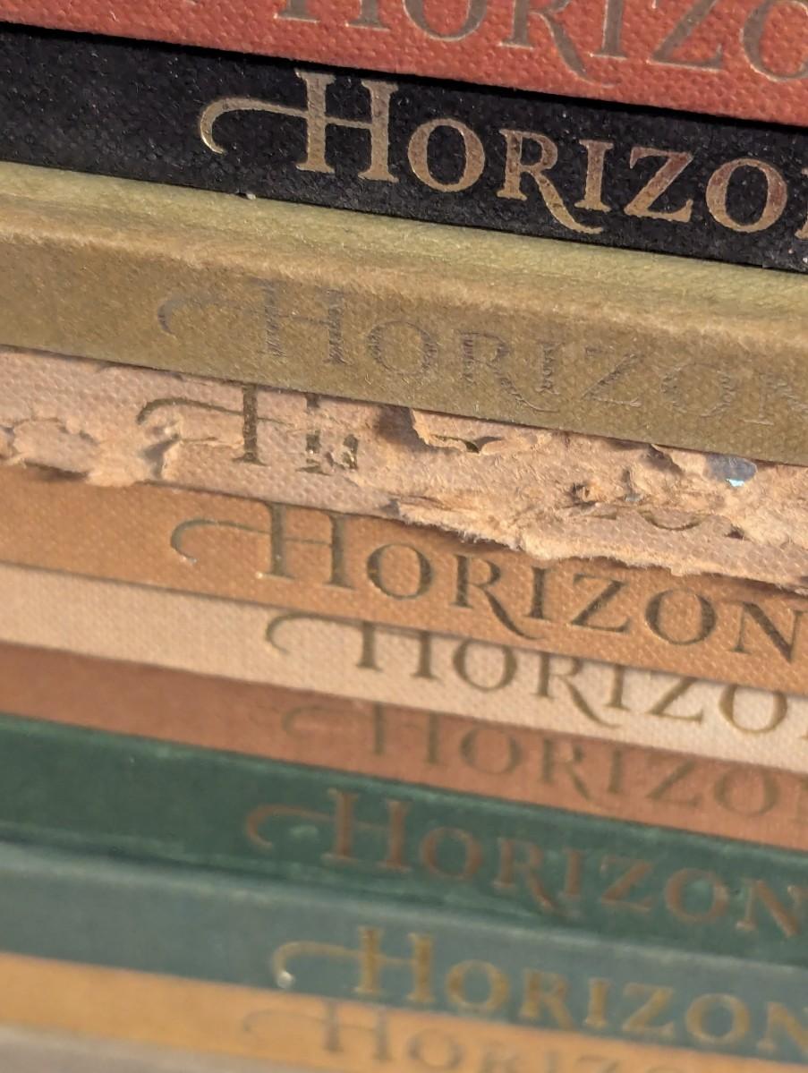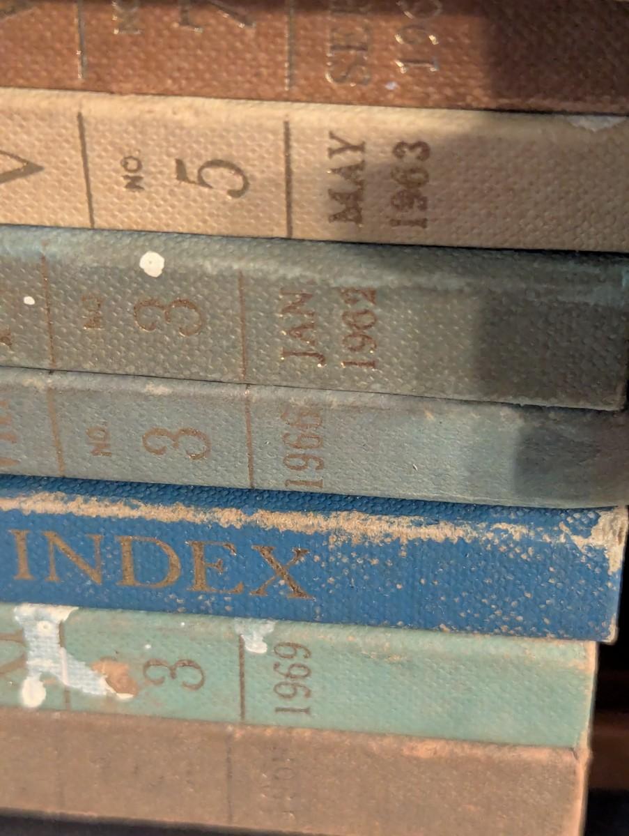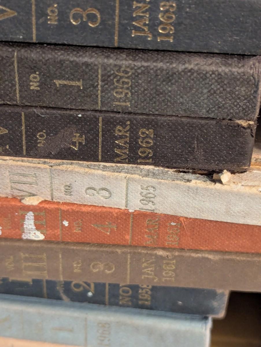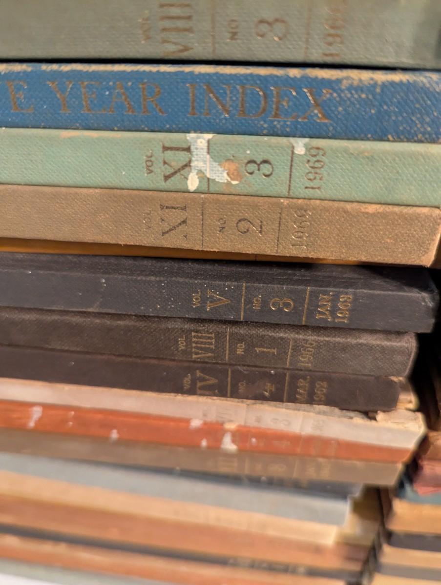 Books have been stored down stairs and have foxing - - Books are down stairs there is a sliding door to go out at the back of the house and go up some stairs to the driveway