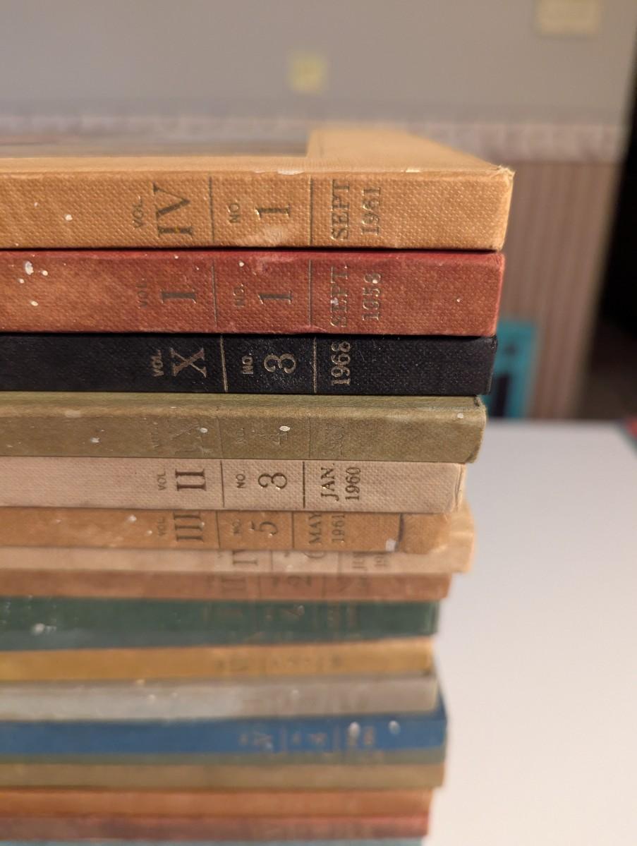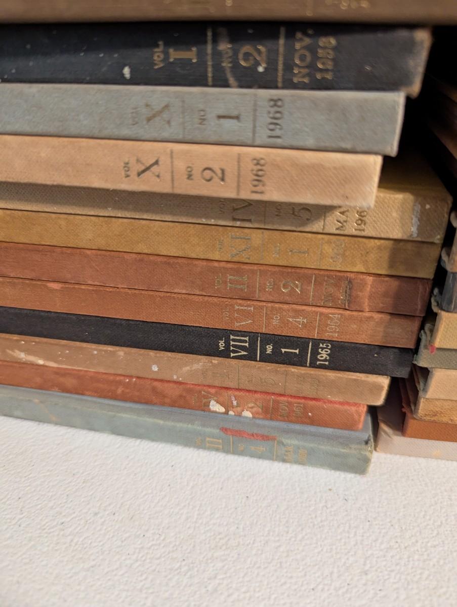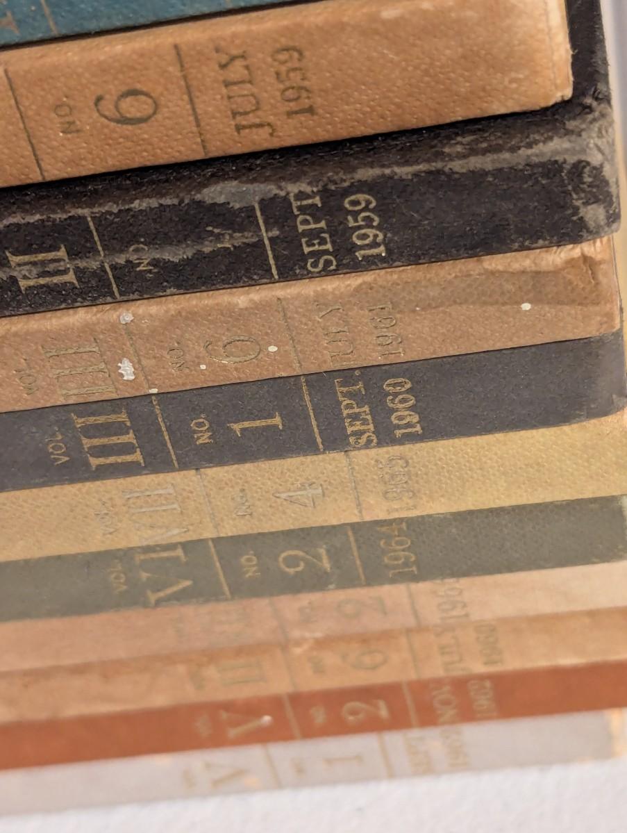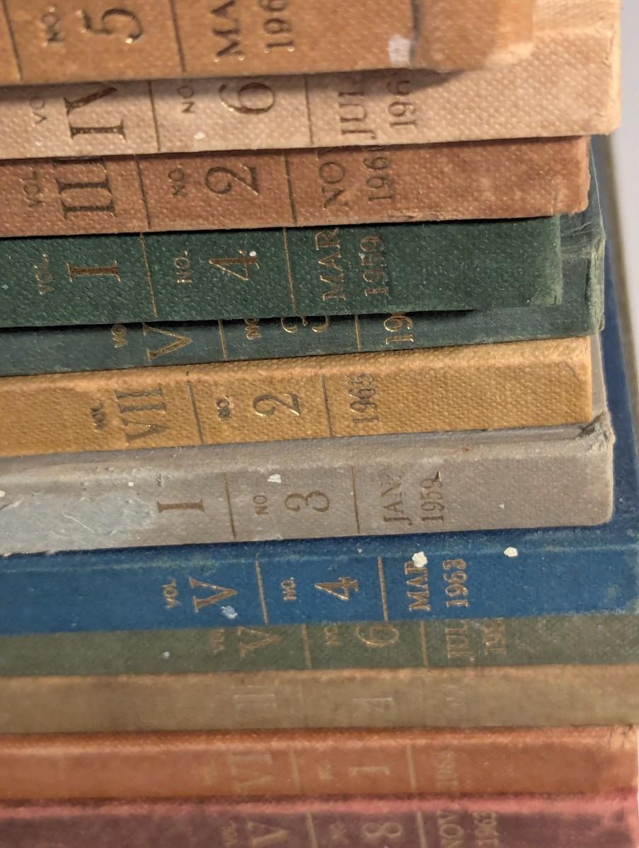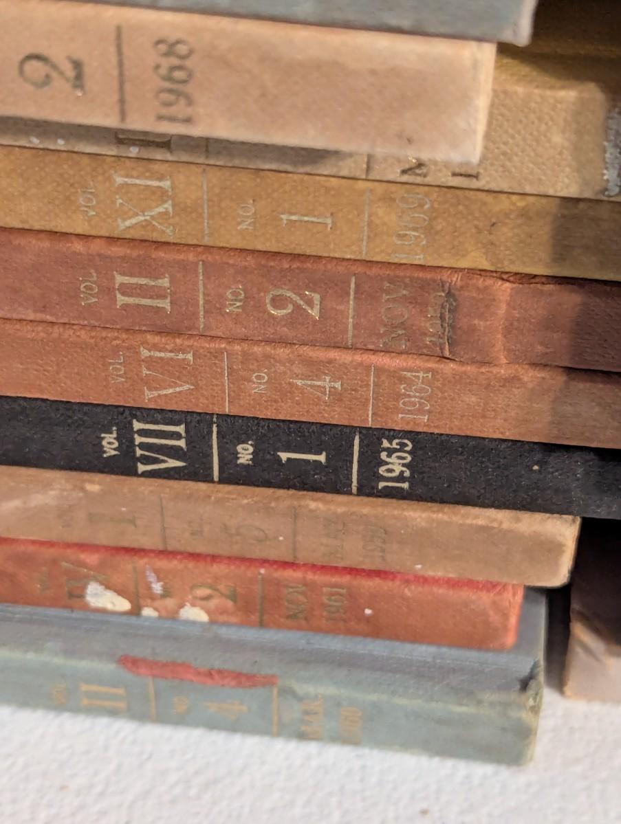 Books have been stored down stairs and have foxing - - Books are down stairs there is a sliding door to go out at the back of the house and go up some stairs to the driveway