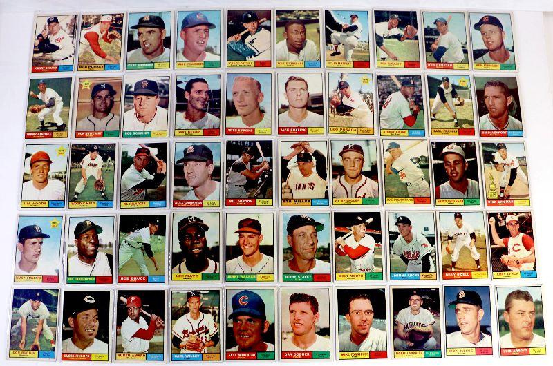 1961 TOPPS BASEBALL CARDS SET - 50 CARDS - ALL HIGH GRADE - VG/EX to EX Excellent Condition