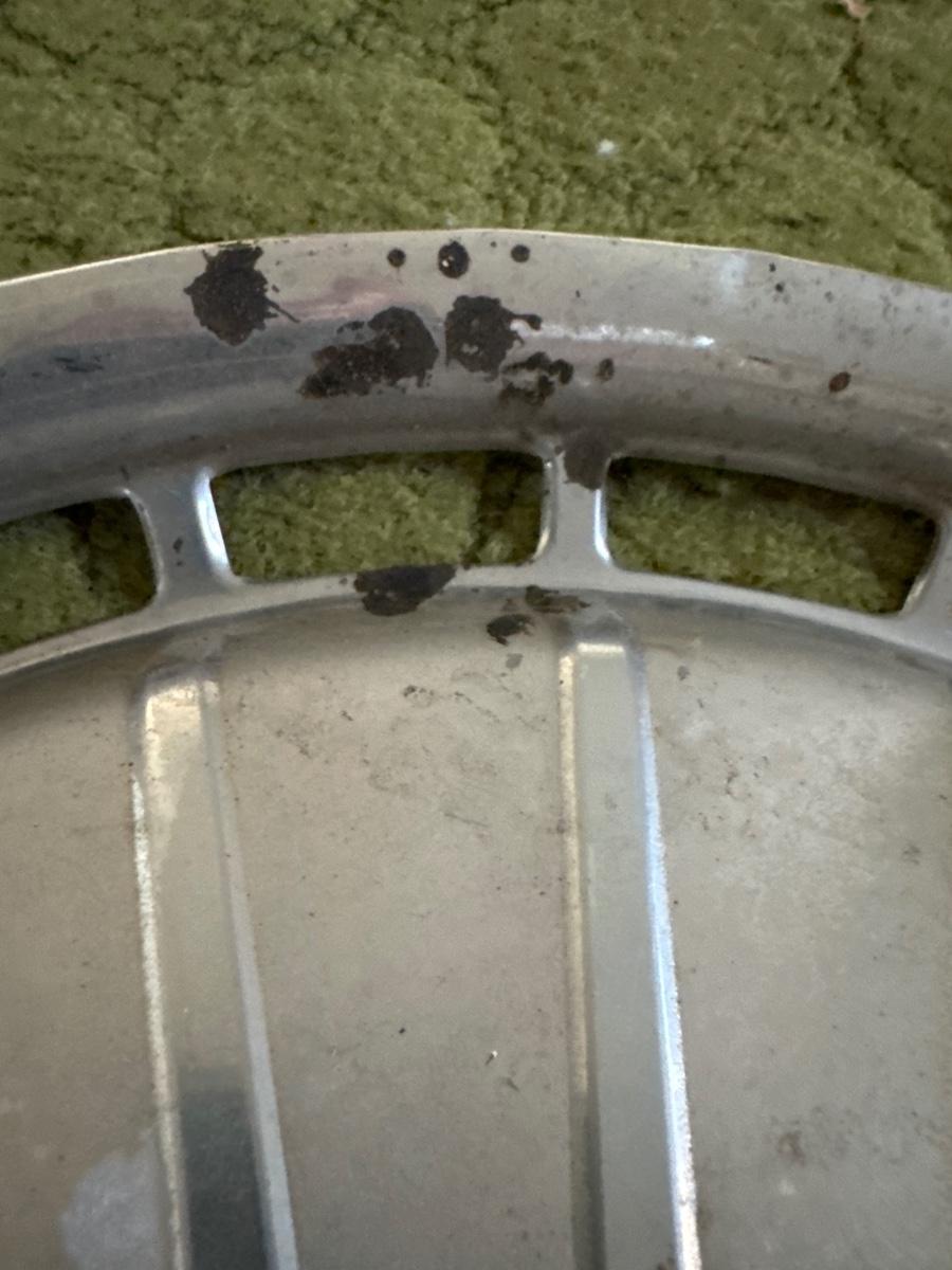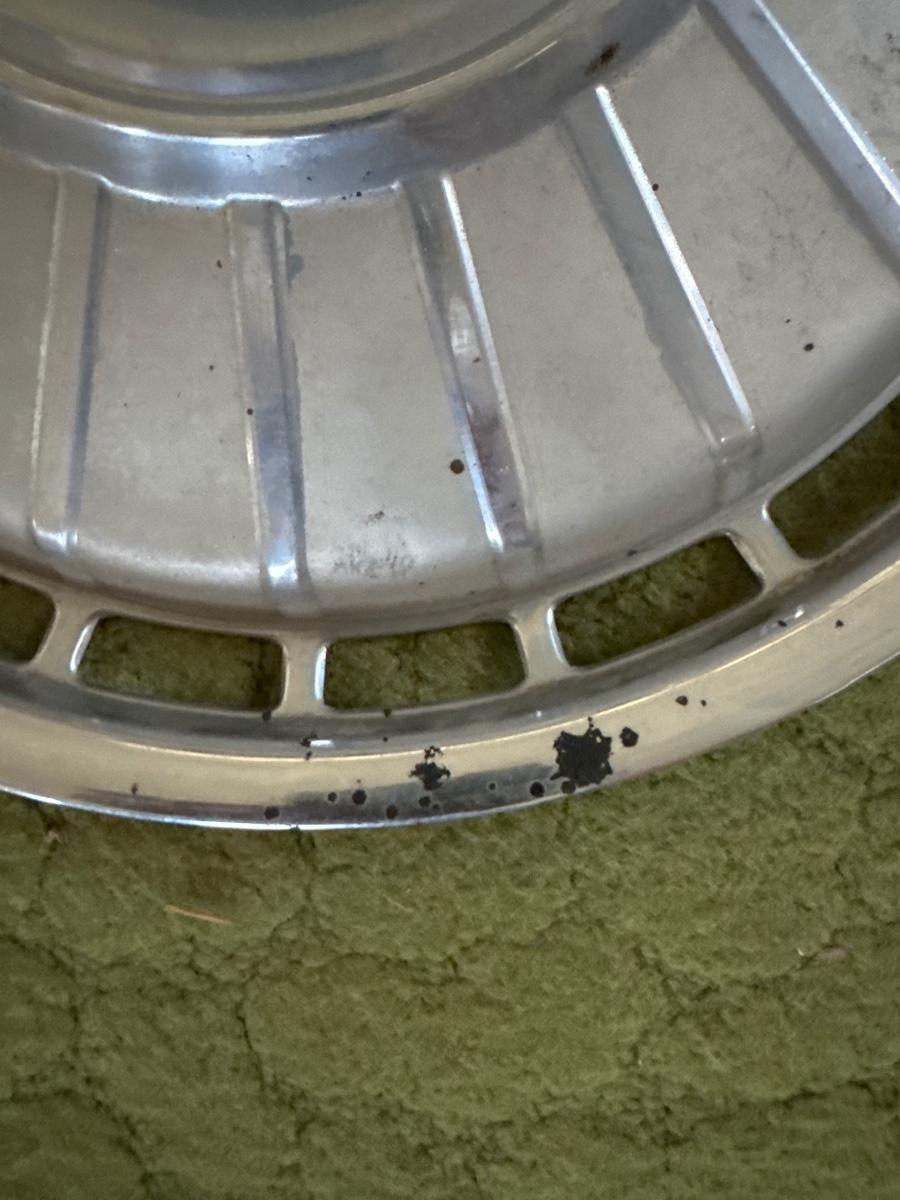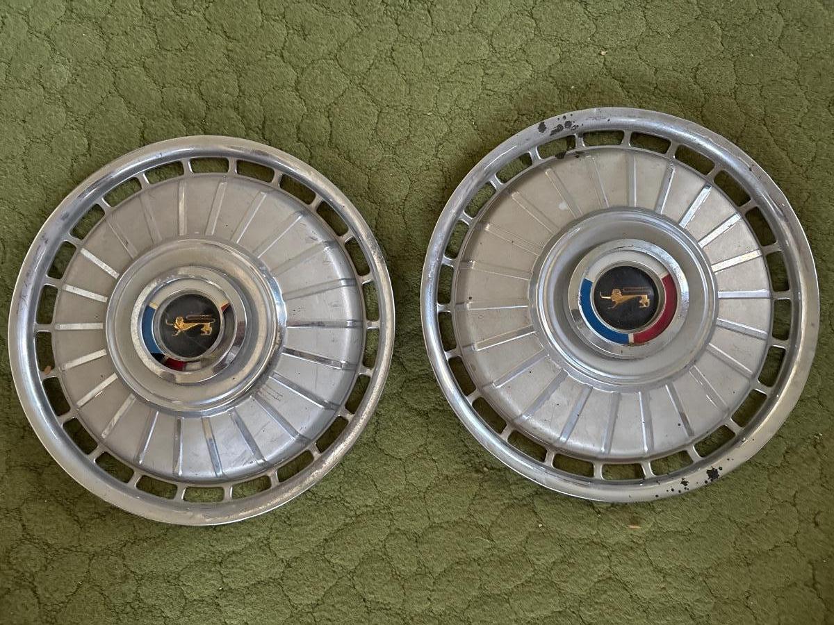 1962 Ford galaxy hubcaps. Includes only 2. On one of the hubcaps the logo is broken please see the photos. And on the other one, it looks like there’s tar on it.