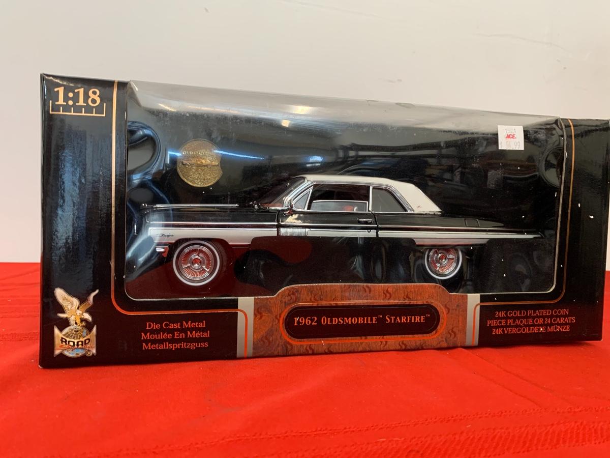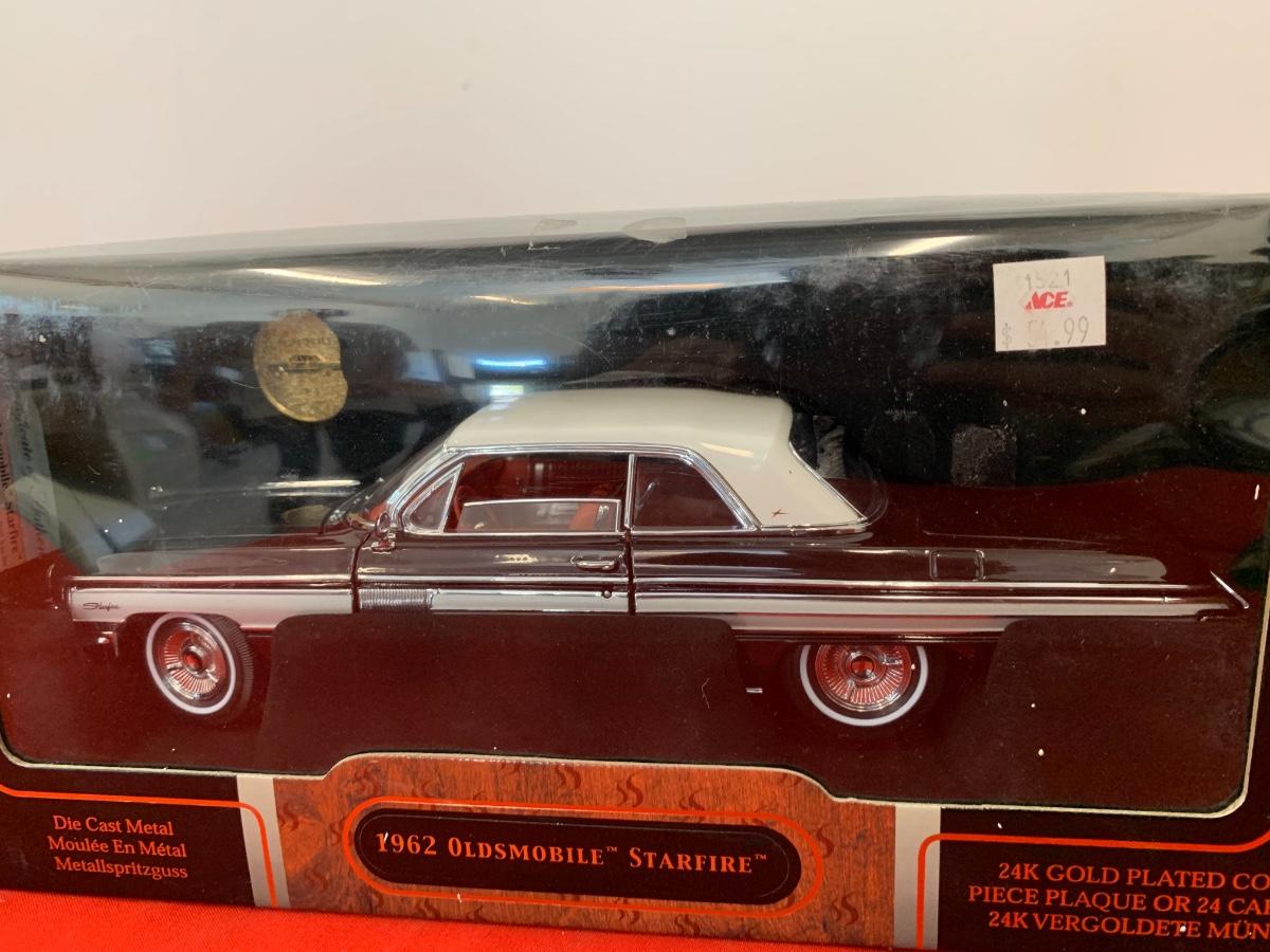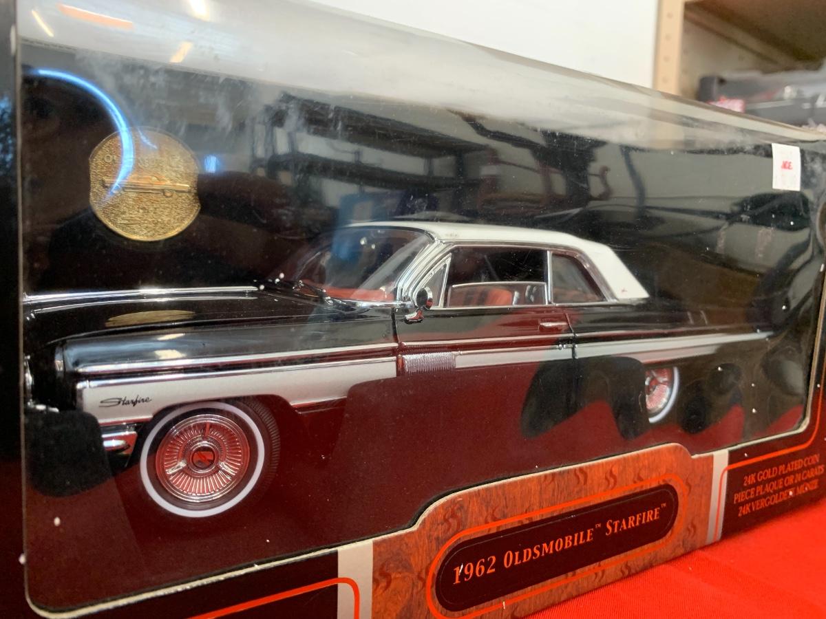 1962 Oldsmobile starfire signature series car new in box with a 24k gold plated coin.