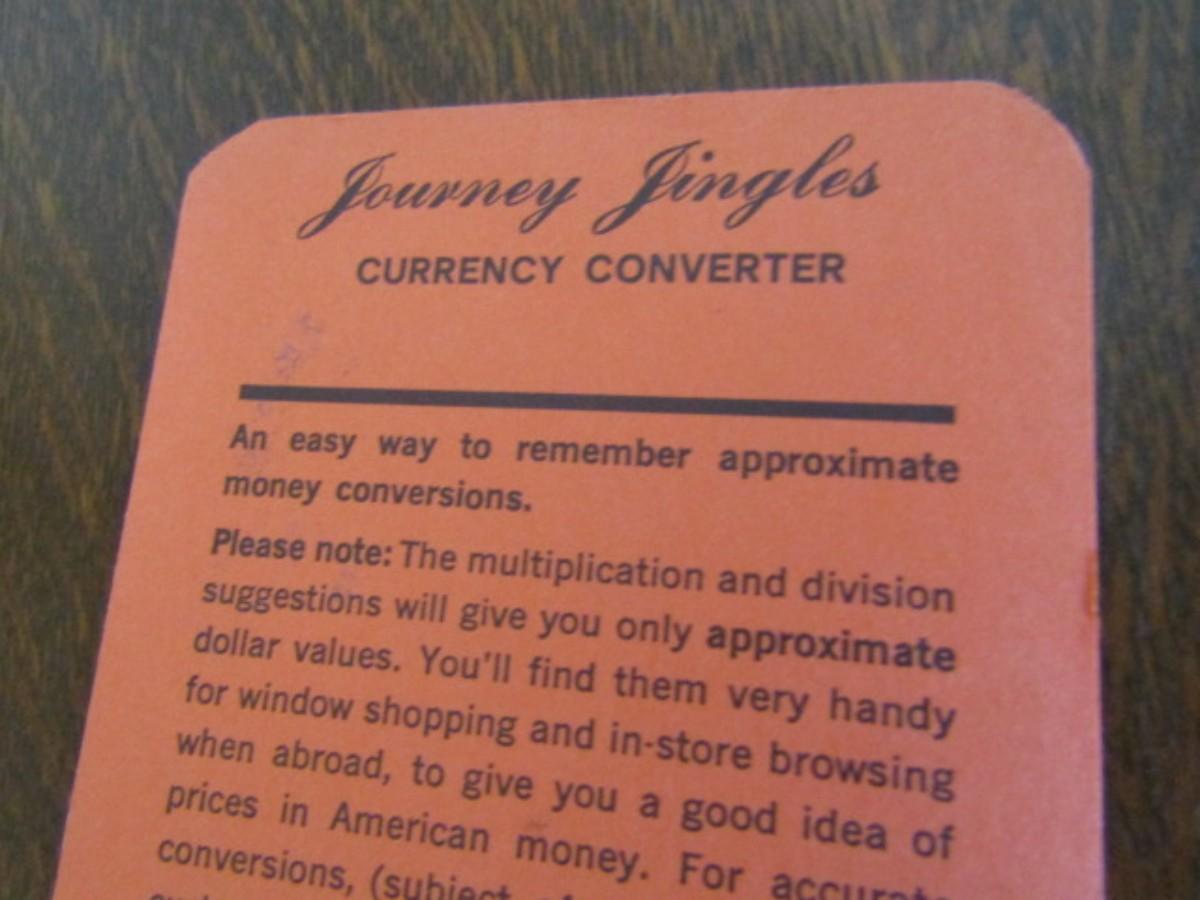 1962 Publication Be My Guest Journey Jingle International Currency Converter Cards
