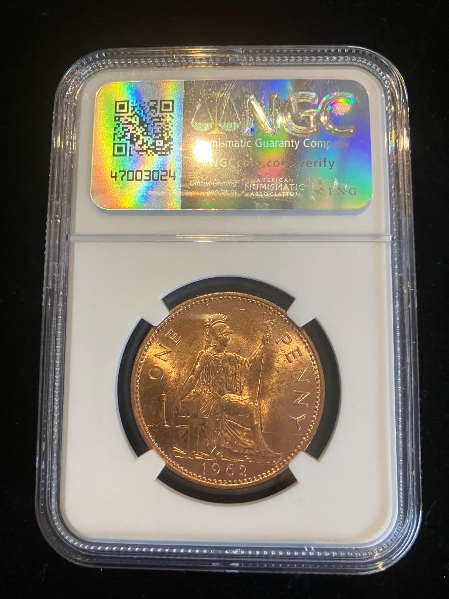 1962 UK QEII Penny – NGC Slabbed Genuine – Beautiful Large Bronze Coin!