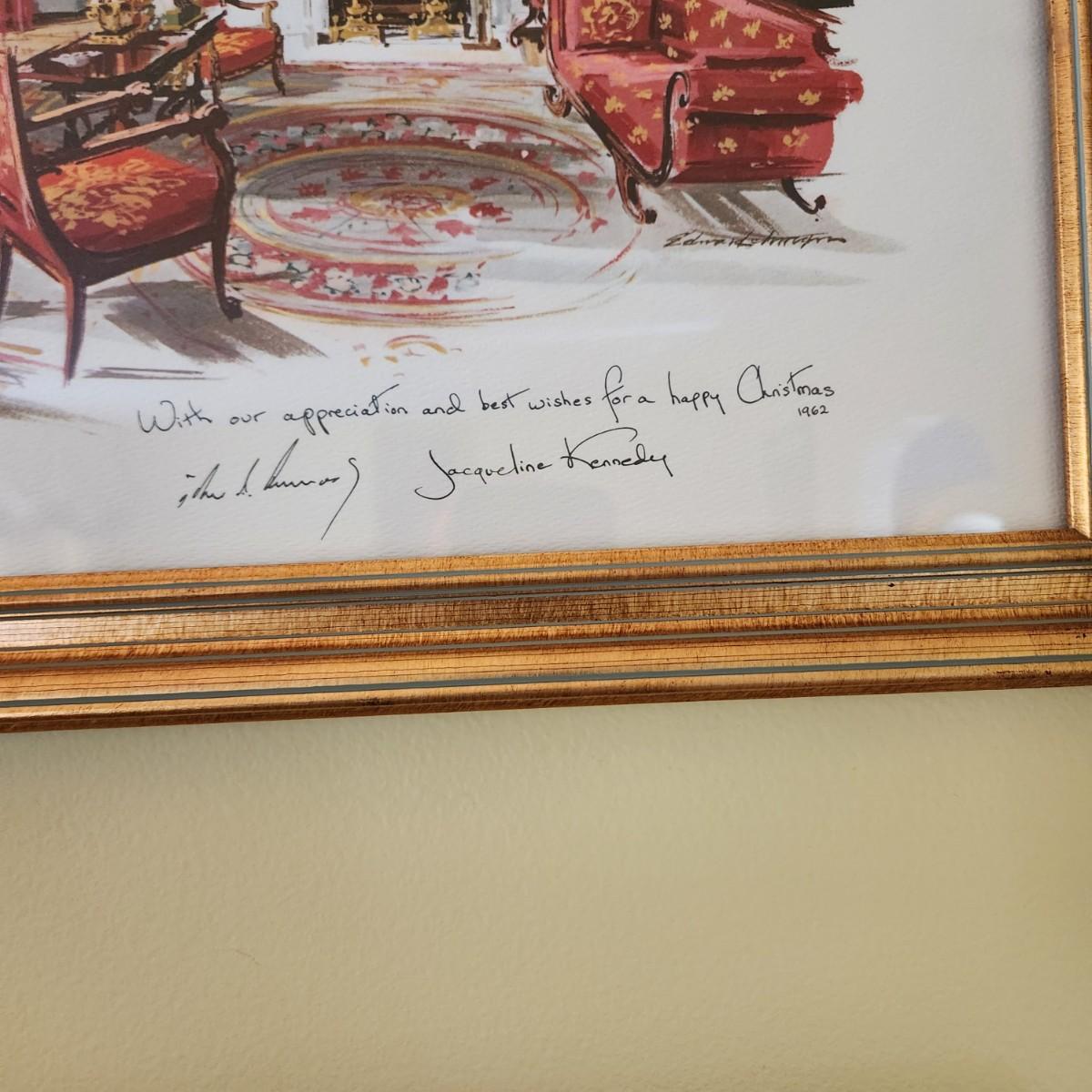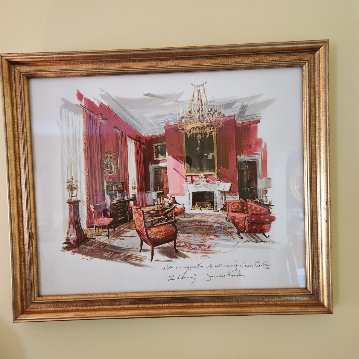 1962 White House "The Red Room" by Edward Lehman with note from Kennedy's