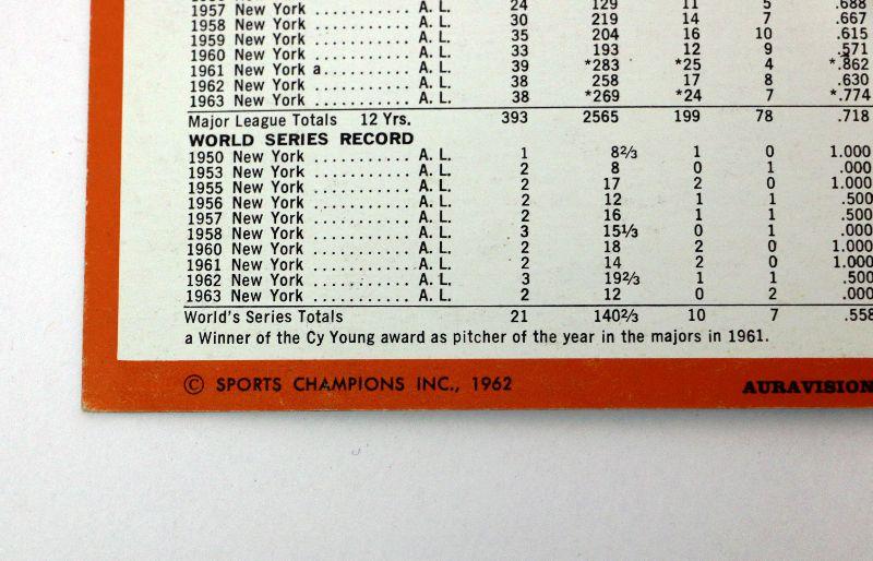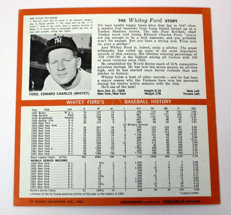 1962 Whitey Ford Baseball Star Sports Record - Original Unused MINT Rare