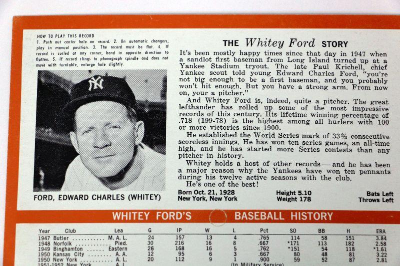 Collector's Item - circa 1962 Picture Music Record featuring Whitey Ford, never used in Mint like new condition