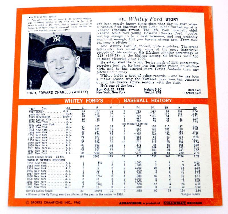 1962 Whitey Ford Baseball Star Sports Record - Original Unused MINT Rare