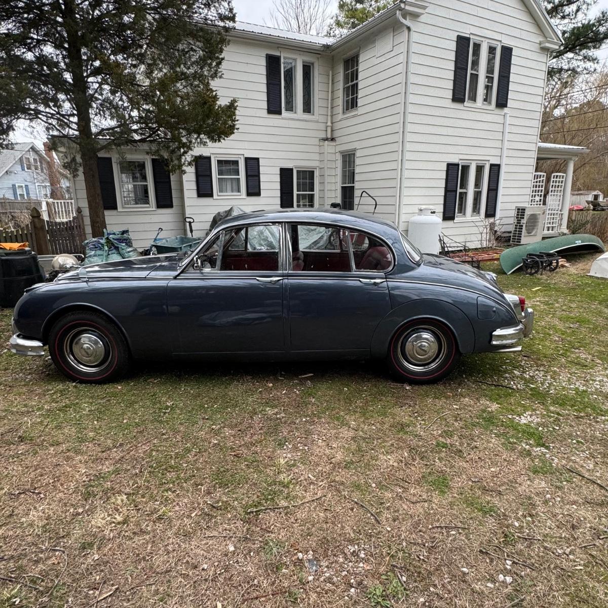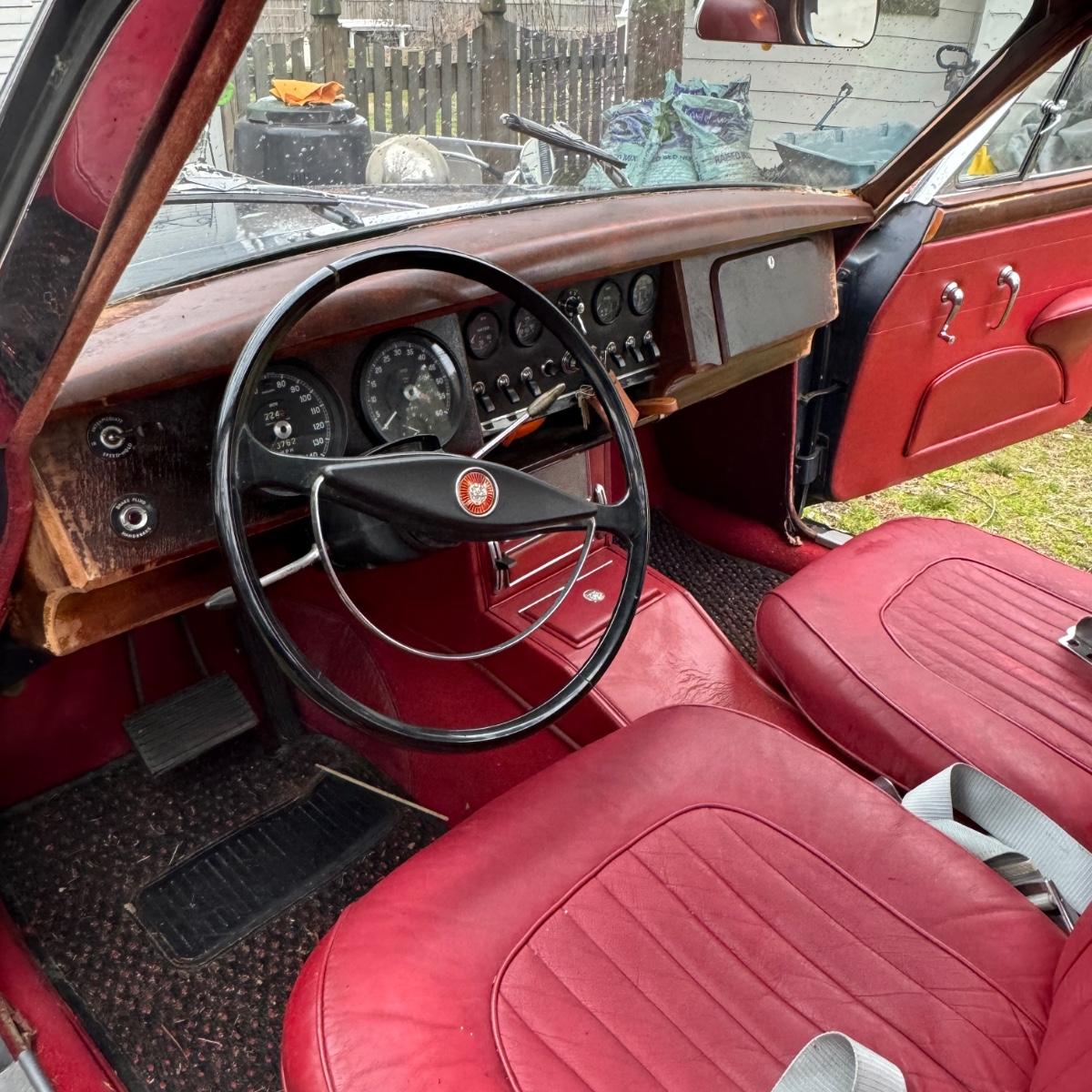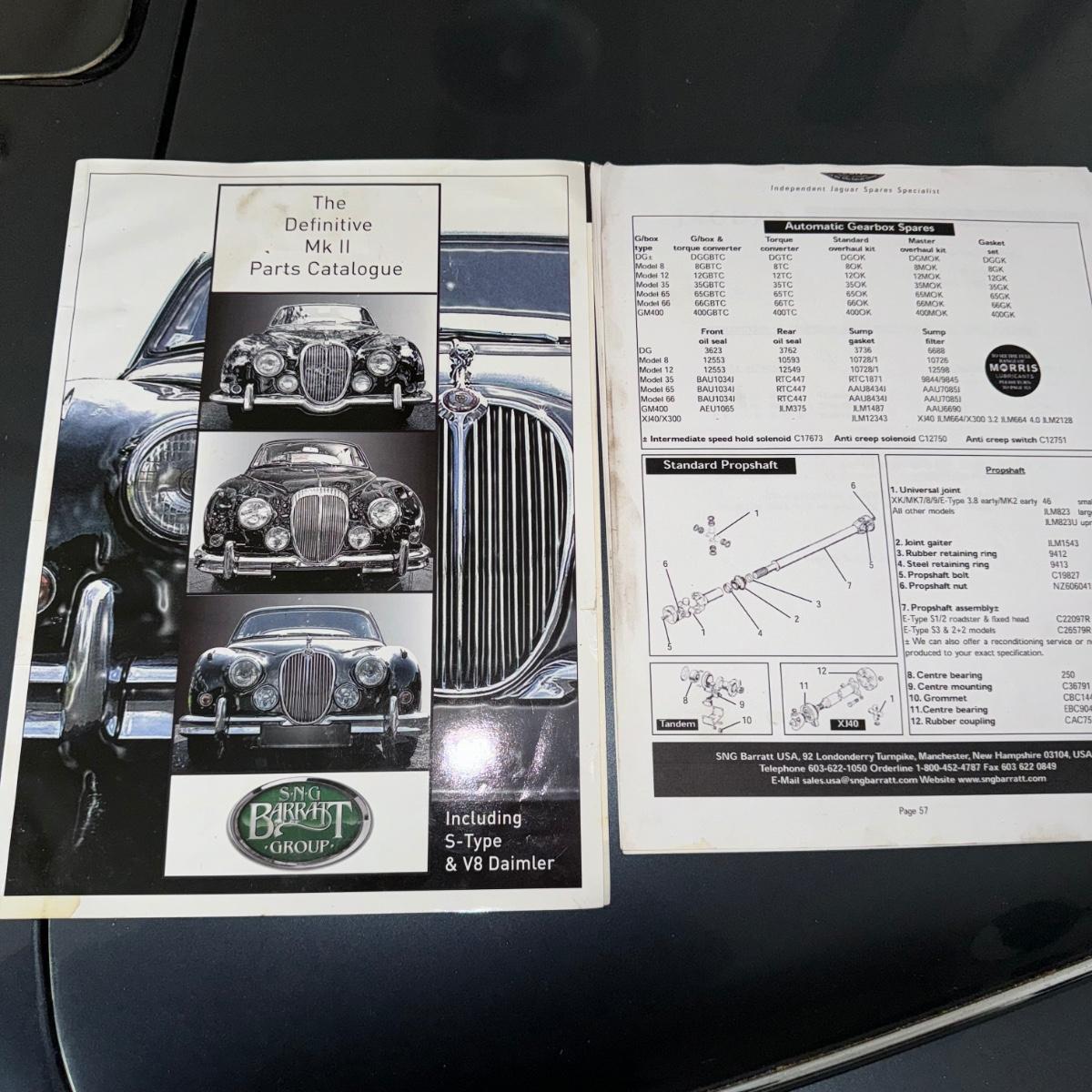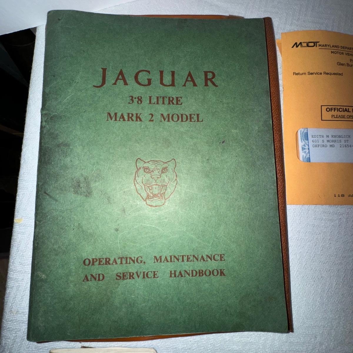 1963 Jaguar MK II, Bj. Don’t miss this opportunity to bid on this classic automobile. Overall condition great for its age. Very nice earlier restoration including new carpeting, leather seats and paint. With that said there are some areas where paint needs some repairs. New front and rear brake calipers, Lucas fog rangers, hoses, mirrors and drive shaft bearing. Car is complete with matching numbers. Cars engine turns over, however will not start due to fuel line leak. Comes with original manuals and addition books, and some new uninstalled parts. Please see pics for more details. Comes with car title No. 58867558