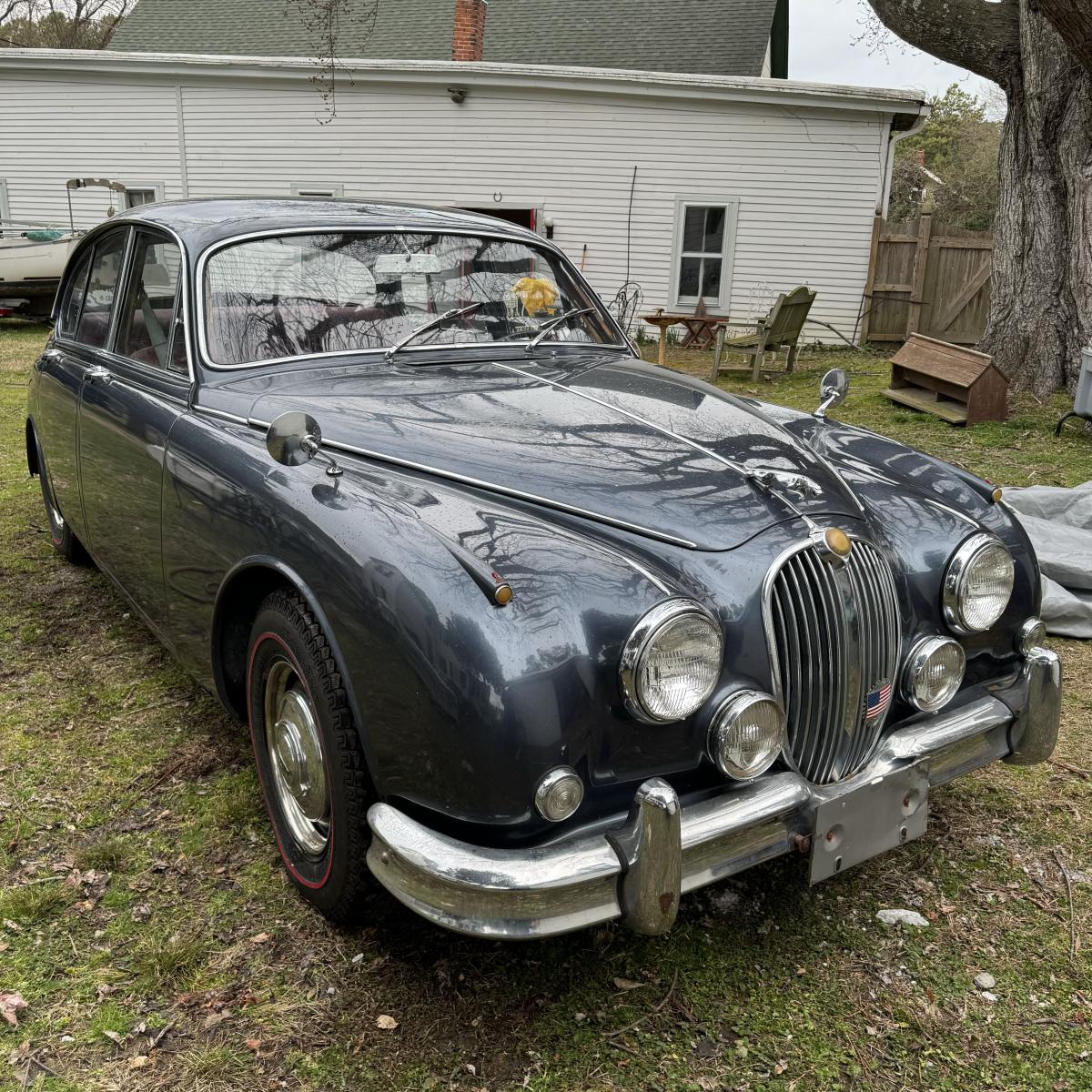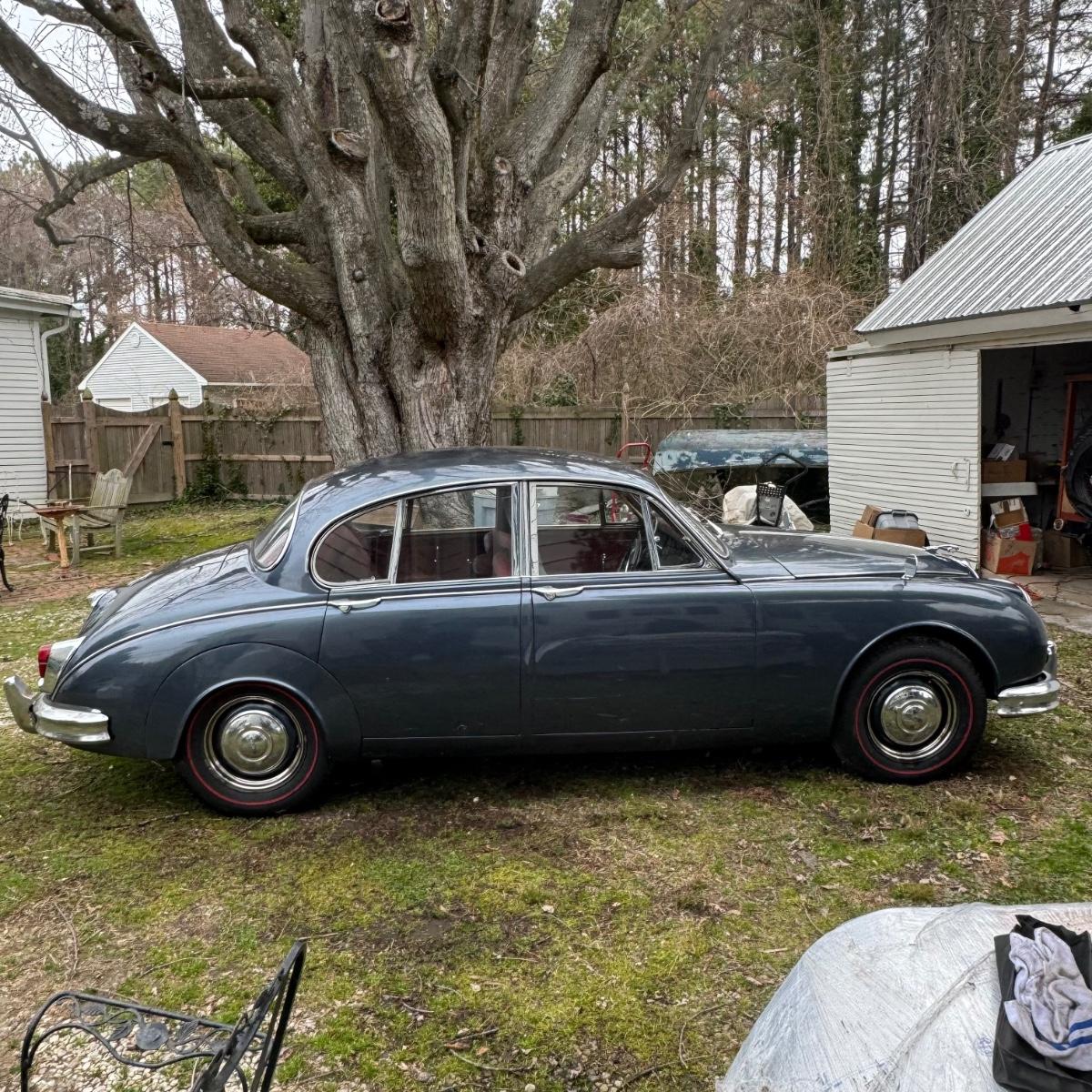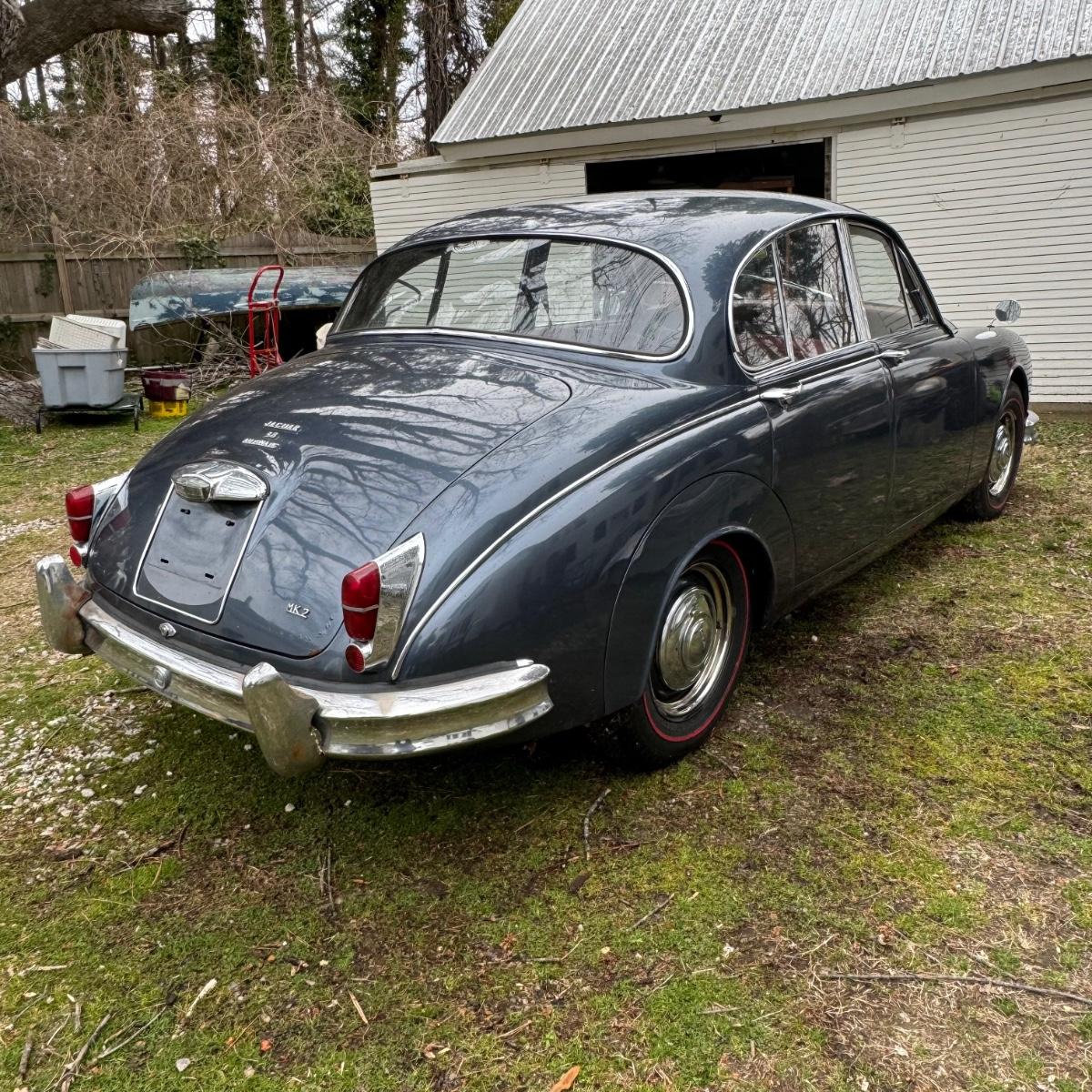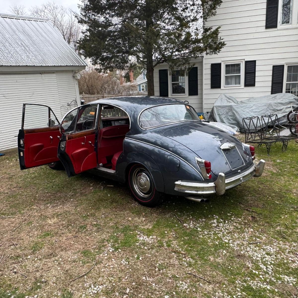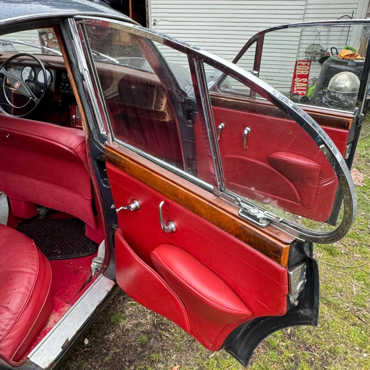 1963 Jaguar MK II, Bj. Don’t miss this opportunity to bid on this classic automobile. Overall condition great for its age. Very nice earlier restoration including new carpeting, leather seats and paint. With that said there are some areas where paint needs some repairs. New front and rear brake calipers, Lucas fog rangers, hoses, mirrors and drive shaft bearing. Car is complete with matching numbers. Cars engine turns over, however will not start due to fuel line leak. Comes with original manuals and addition books, and some new uninstalled parts. Please see pics for more details. Comes with car title No. 58867558