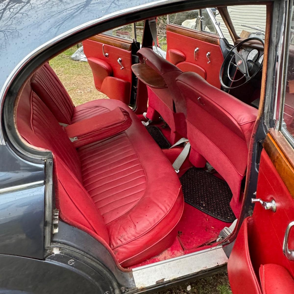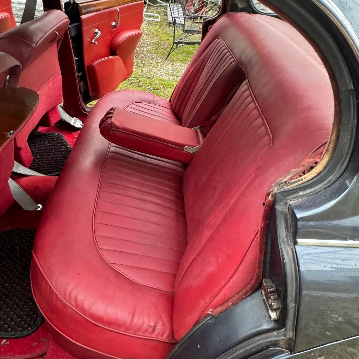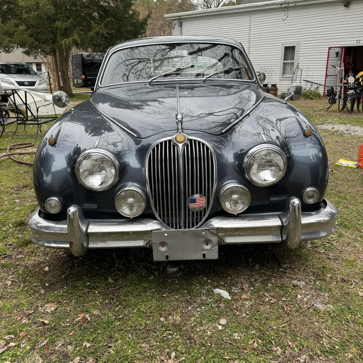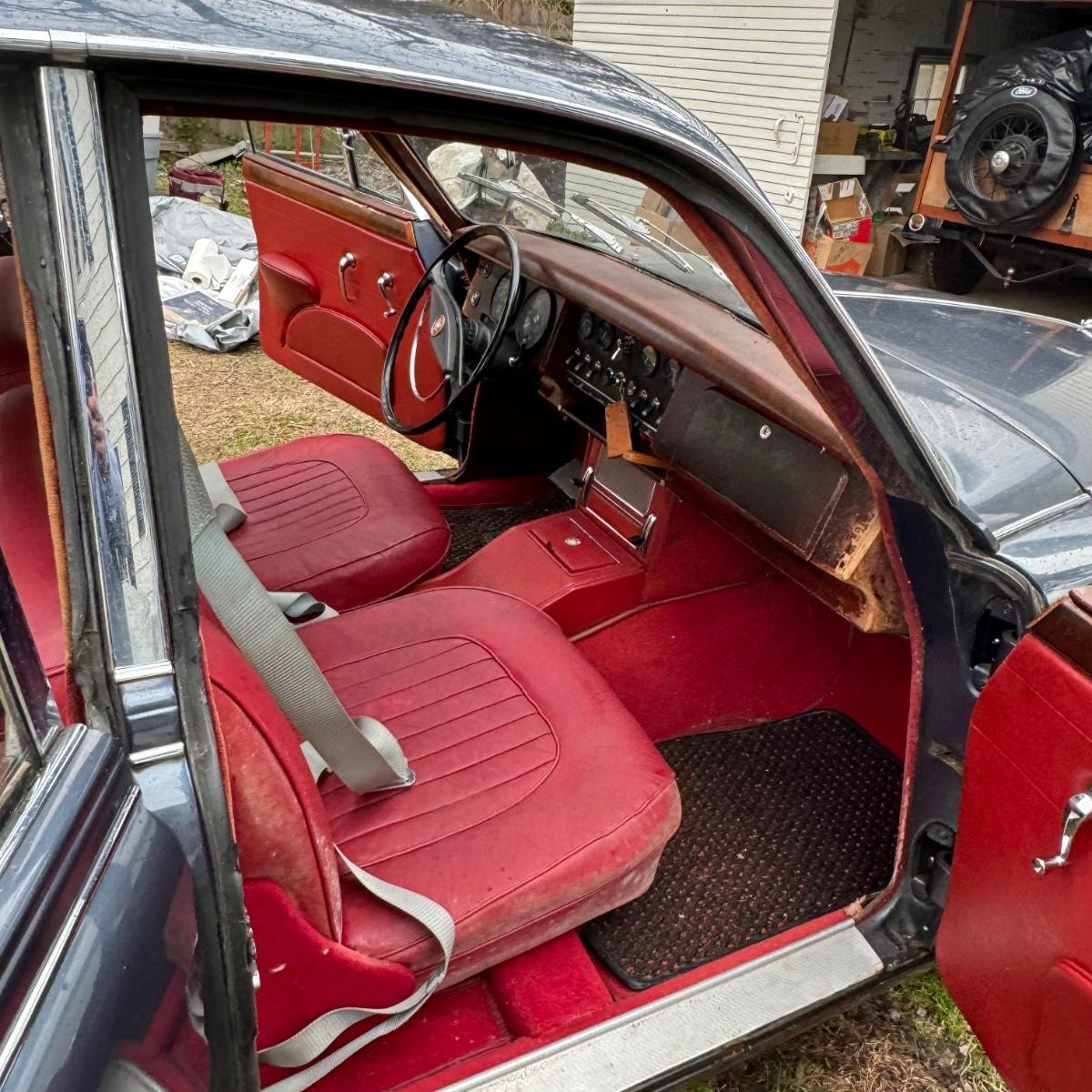 1963 Jaguar MK II, Bj. Don’t miss this opportunity to bid on this classic automobile. Overall condition great for its age. Very nice earlier restoration including new carpeting, leather seats and paint. With that said there are some areas where paint needs some repairs. New front and rear brake calipers, Lucas fog rangers, hoses, mirrors and drive shaft bearing. Car is complete with matching numbers. Cars engine turns over, however will not start due to fuel line leak. Comes with original manuals and addition books, and some new uninstalled parts. Please see pics for more details. Comes with car title No. 58867558