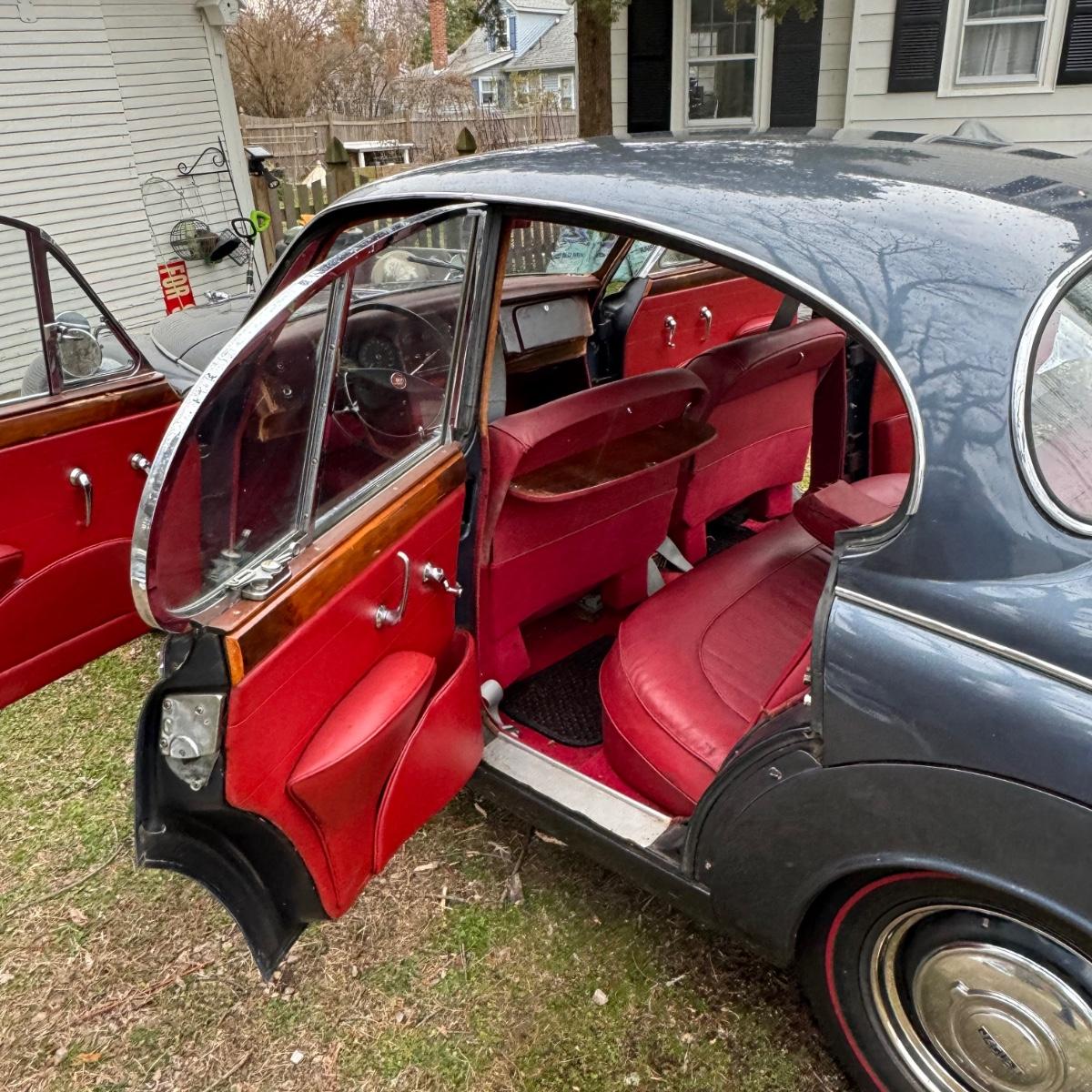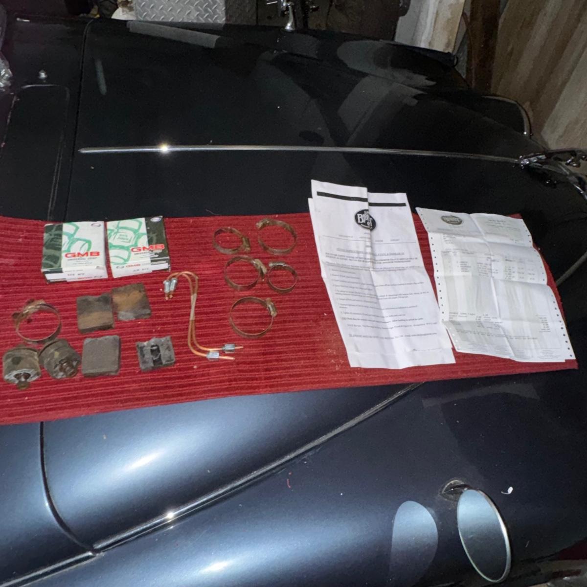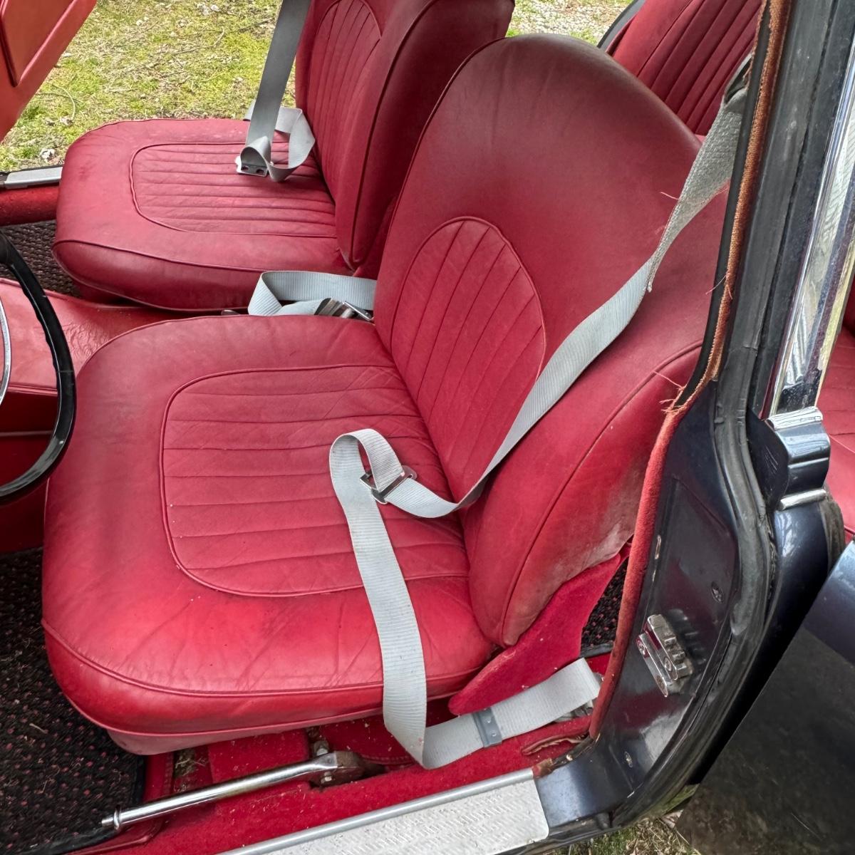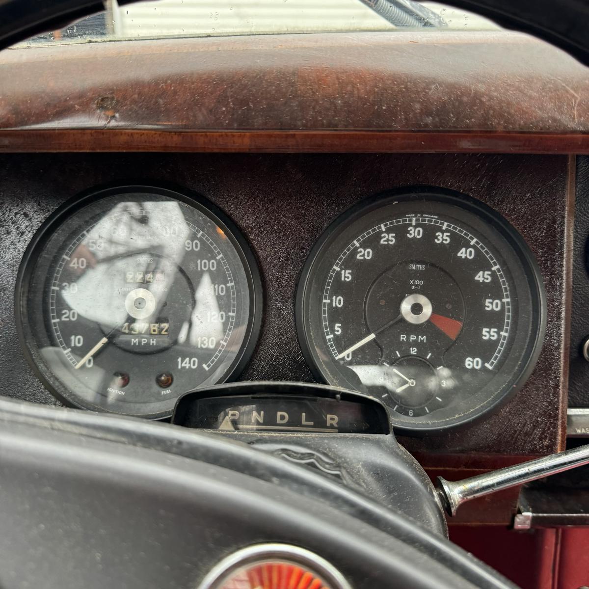 1963 Jaguar MK II, Bj. Don’t miss this opportunity to bid on this classic automobile. Overall condition great for its age. Very nice earlier restoration including new carpeting, leather seats and paint. With that said there are some areas where paint needs some repairs. New front and rear brake calipers, Lucas fog rangers, hoses, mirrors and drive shaft bearing. Car is complete with matching numbers. Cars engine turns over, however will not start due to fuel line leak. Comes with original manuals and addition books, and some new uninstalled parts. Please see pics for more details. Comes with car title No. 58867558