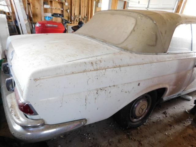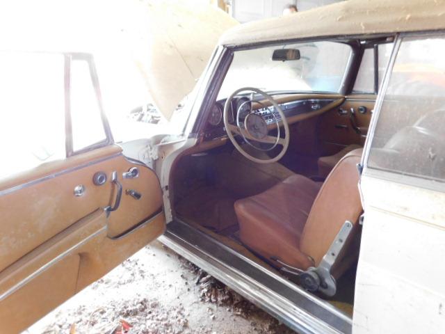 1963 Mercedes 220SE Two Door Convertible Showing 93,000 Miles This is a project car and no warranty or guarantee that all parts or pieces are available. Will need to be pulled from garage by roll back or other means. This is facing out toward garage door and easy to access. South Carolina clear title. Sale of vehicle is by cash, bank check, or wire transfer only. Pictures show under carriage at all 4 wheel wells and under each door. We bump the floor boards and everything sounded firm without any hollow areas. All 4 tires are flat so we can not get underneath it. From all appearances, very minimal body rust except at bumpers. New pictures show trunk area at wheel wells and spare tire compartment. Blemishes seen is mostly dirt and residue. 3% discount equals 12% buyer's premium on this item only and will be adjusted on the final invoice total.