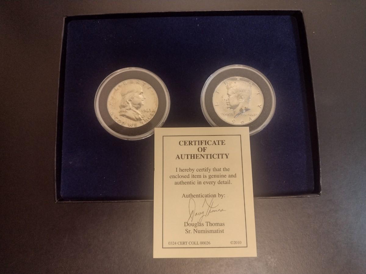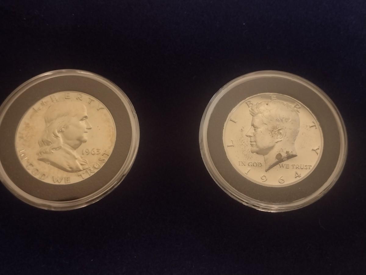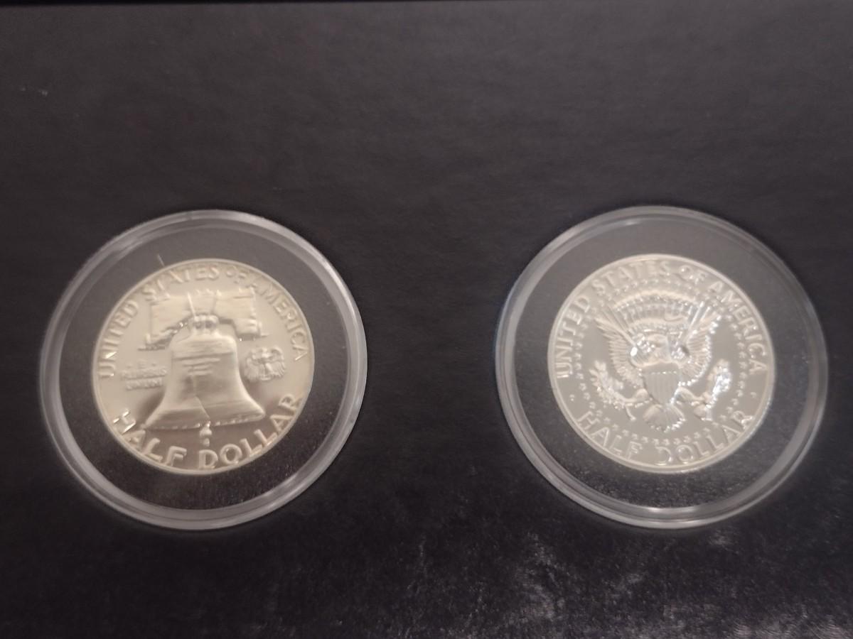 1963 US Mint Silver Franklin and 1964 Silver Kennedy Half Dollars Uncirculated (#46)