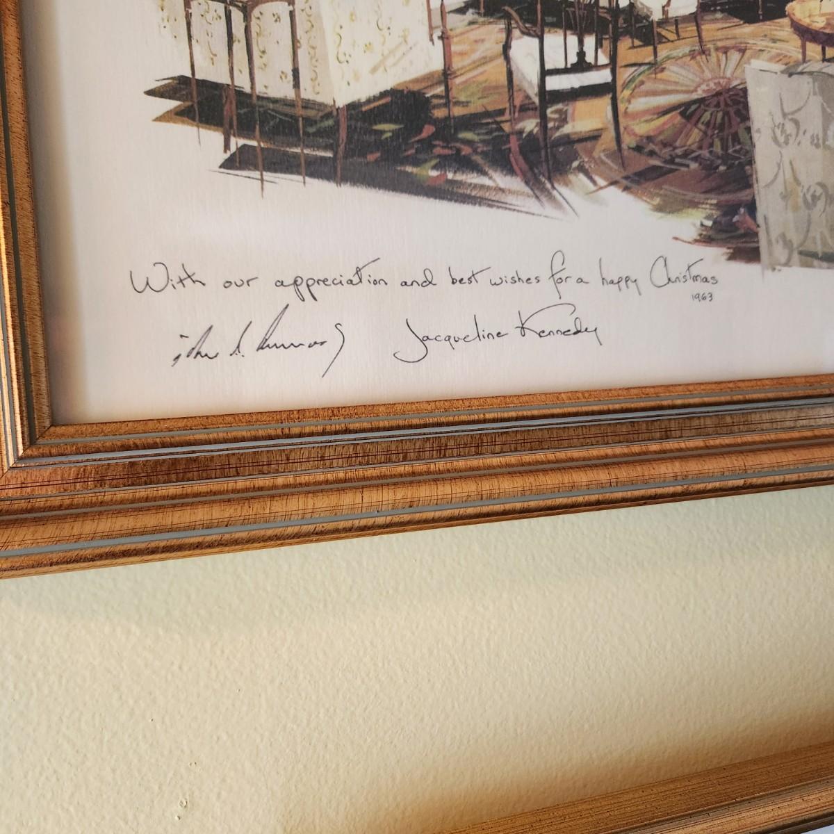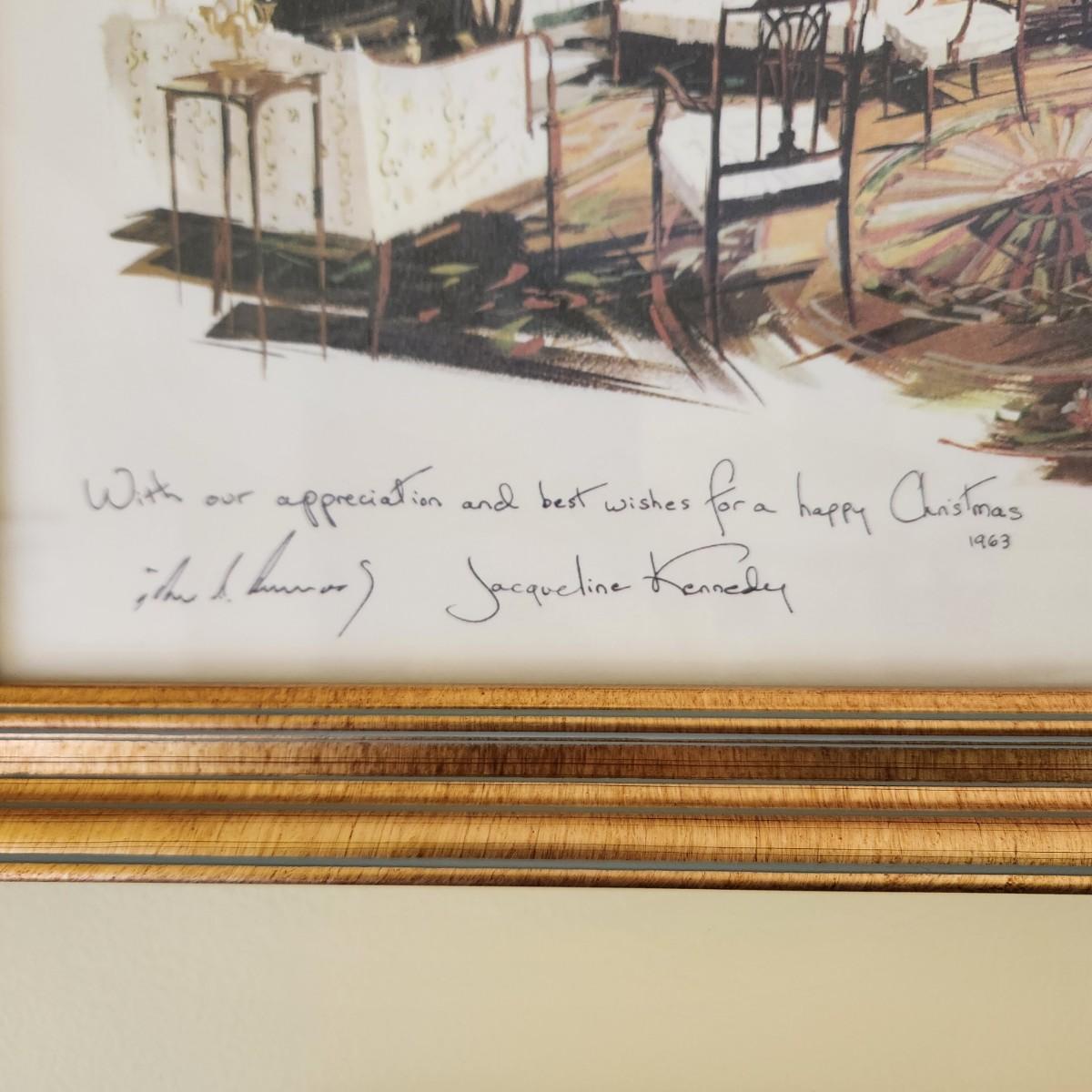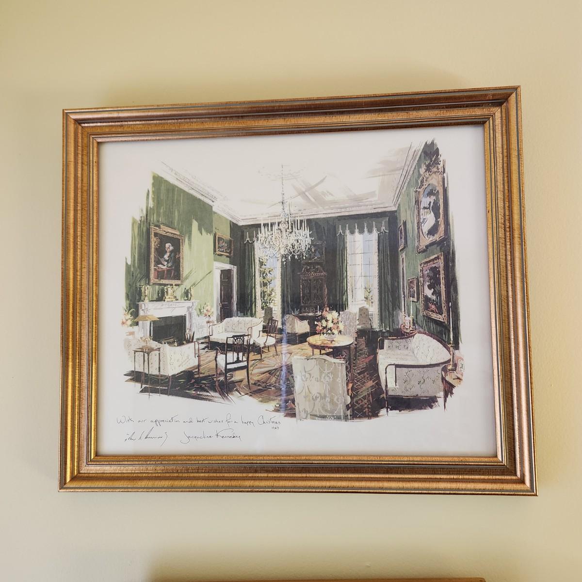 1963 White House "The Green Room" by Edward Lehman with note from Kennedy's