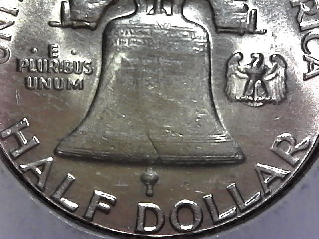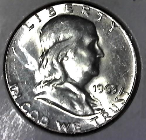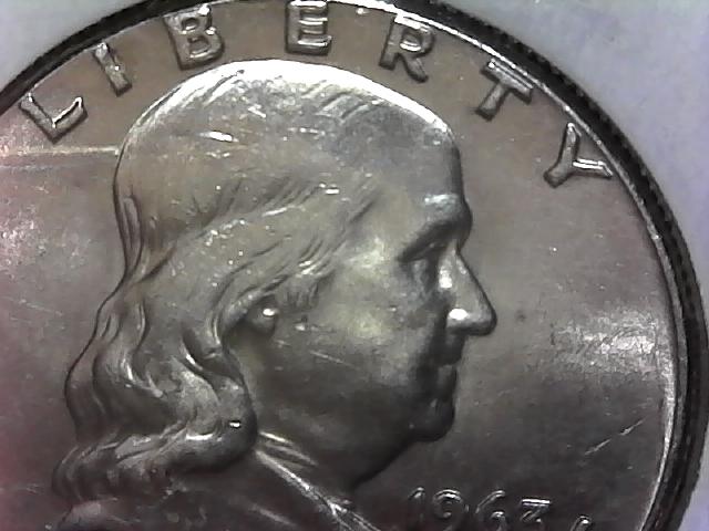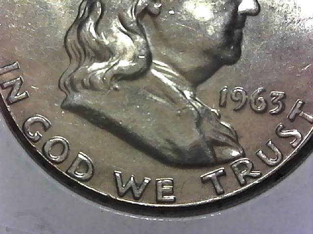 1963-P Franklin Silver Half Dollar VF to AU flip card plastic hindered good pictures. obverse Minimal scratches to portrait at and in field. reverse field is clean with minor wear at bell