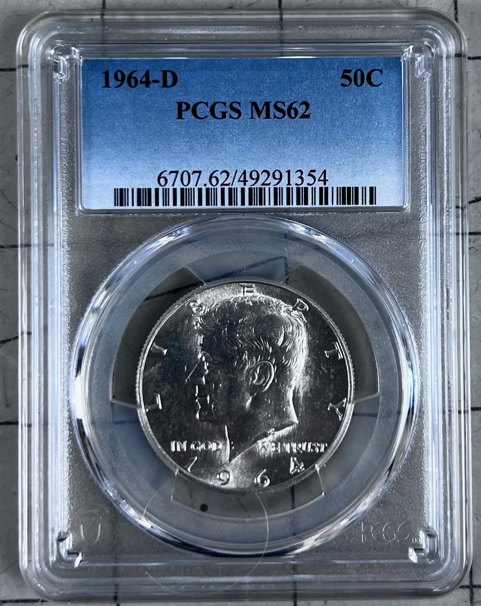 1964 D Fifty Dent Piece 90% Silver PCGS MS62 Grading
