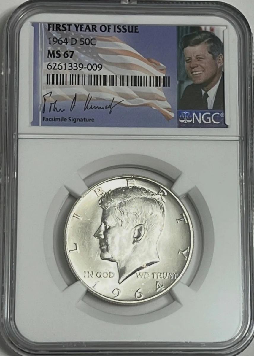 1964 D NGC MS67 SILVER KENNEDY HALF DOLLAR FIRST YEAR ISSUE JFK COIN SIGNATURE