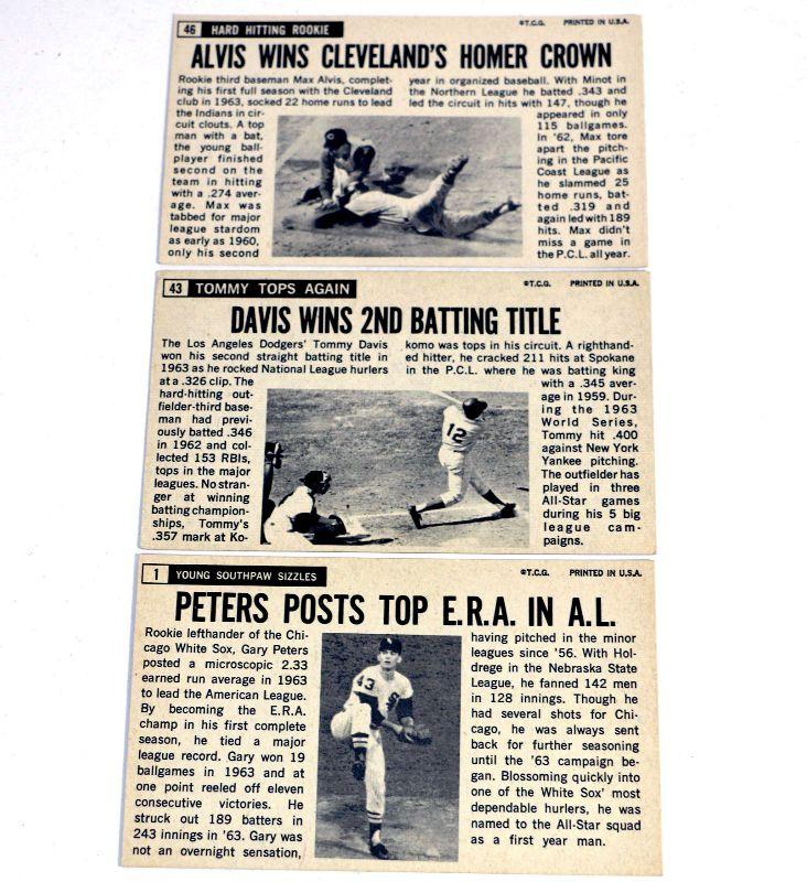 1964 TOPPS GIANTS BASEBALL CARDS SET - Max Alvis Tommy Davis Gary Peters