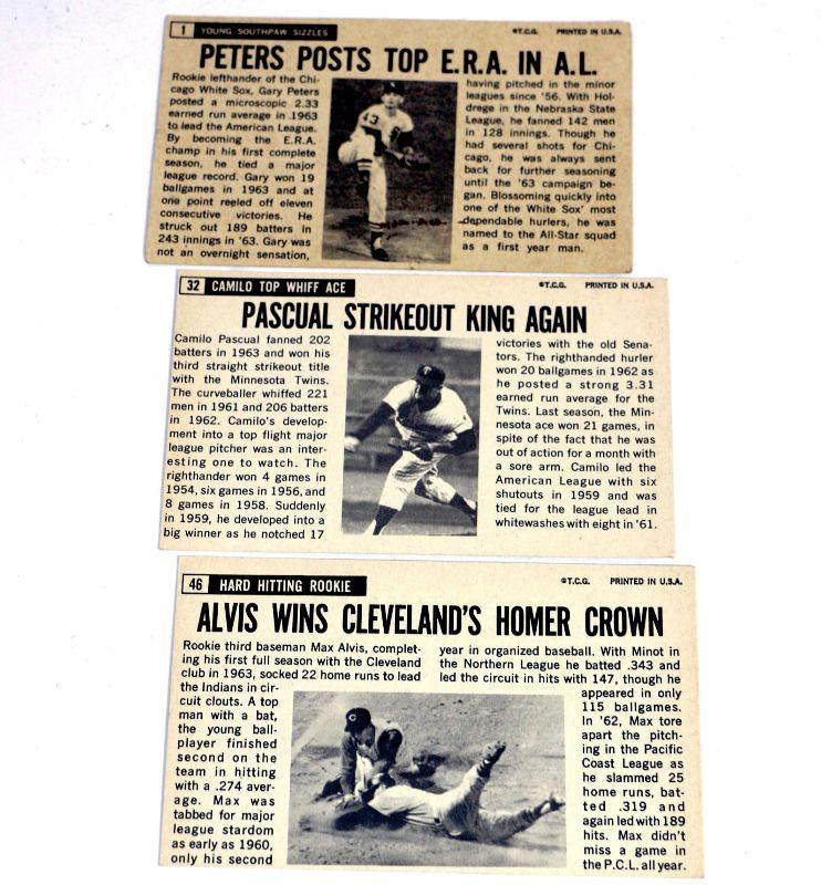 1964 TOPPS GIANTS BASEBALL CARDS SET - Camilo Pascual Gary Peters Max Alvis