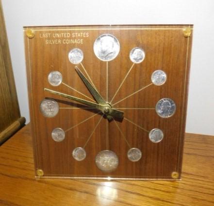 1964 US Silver Coin Desk Battery Marion-Kay Numismatic Desk Clock