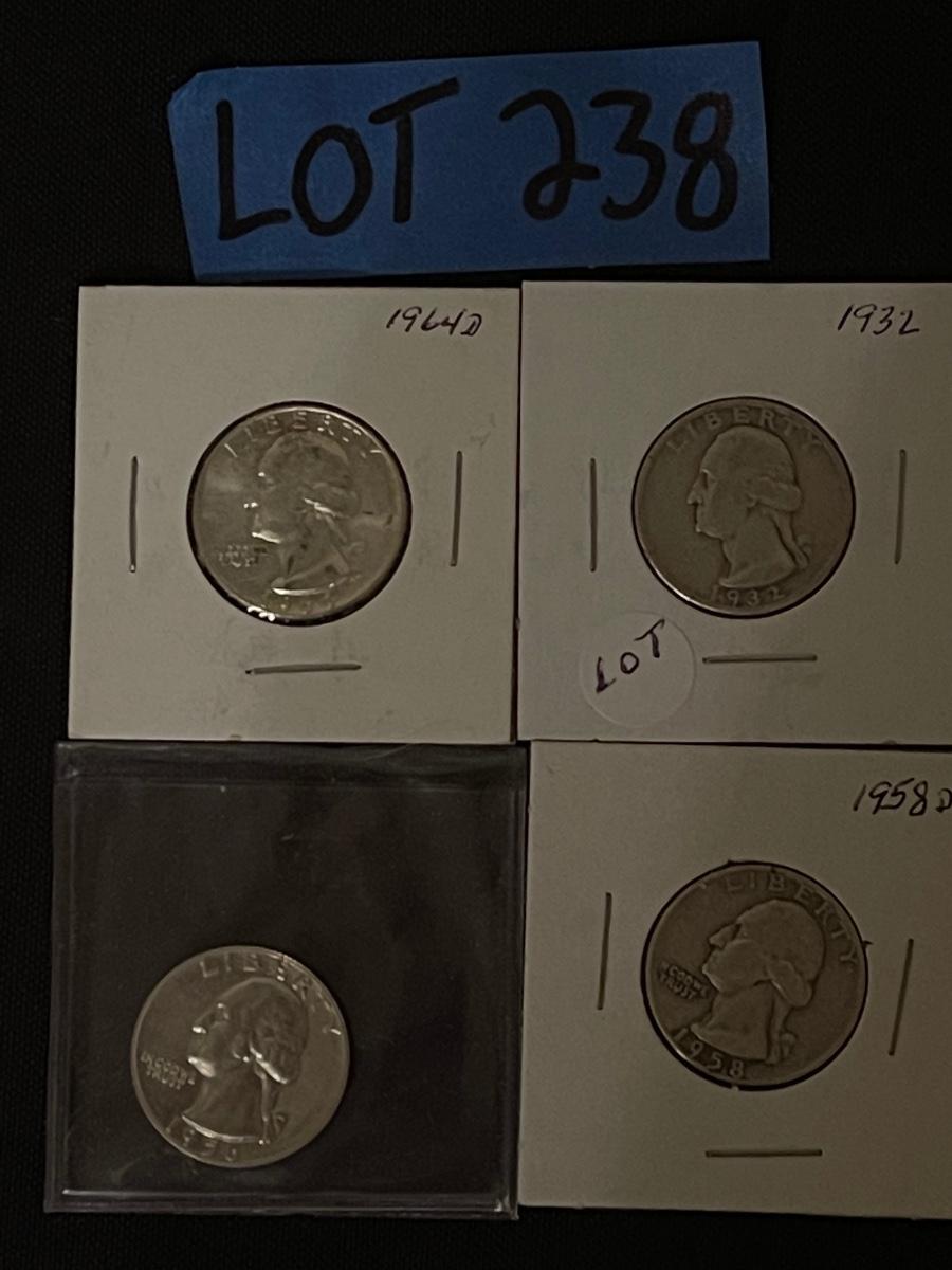 1964-D, 1932, 1958-D, 1956 Quarters.